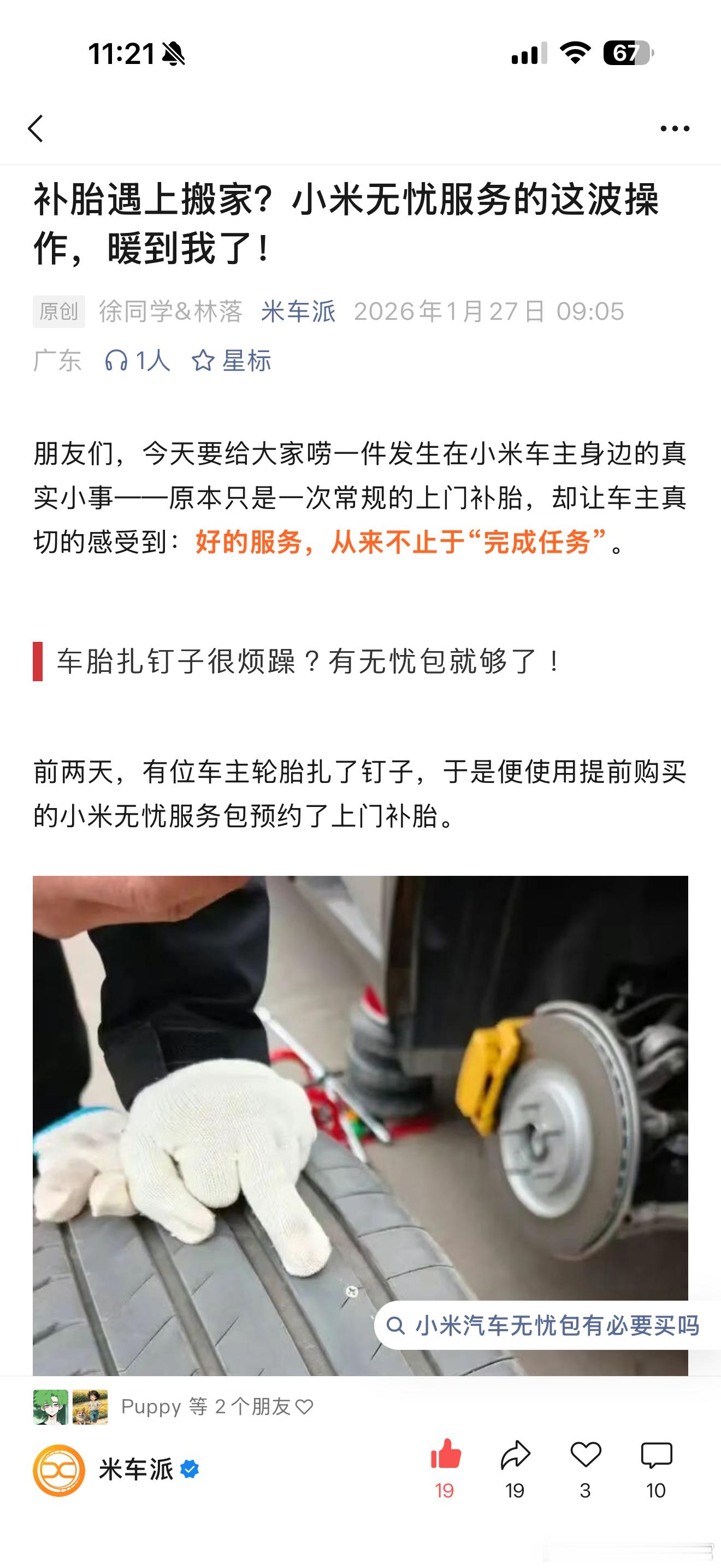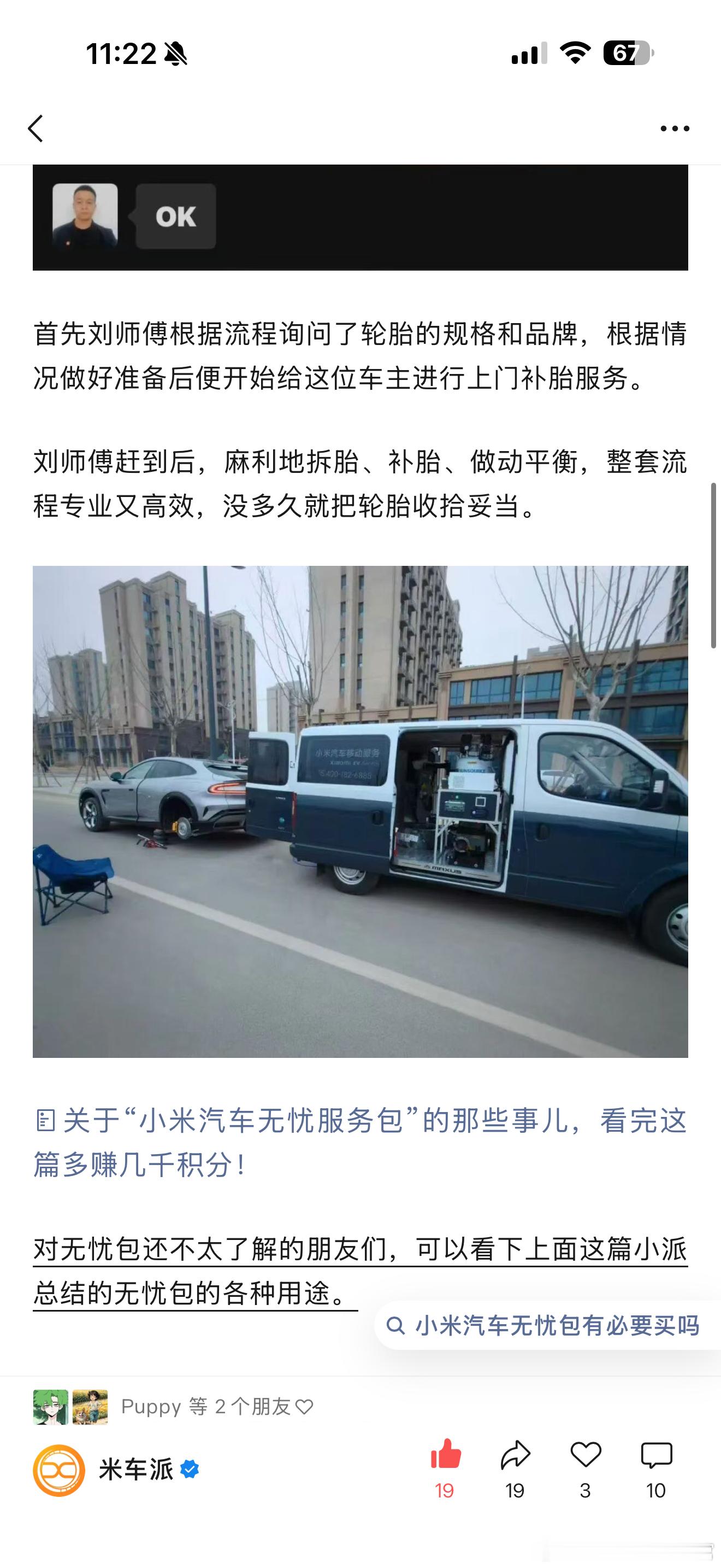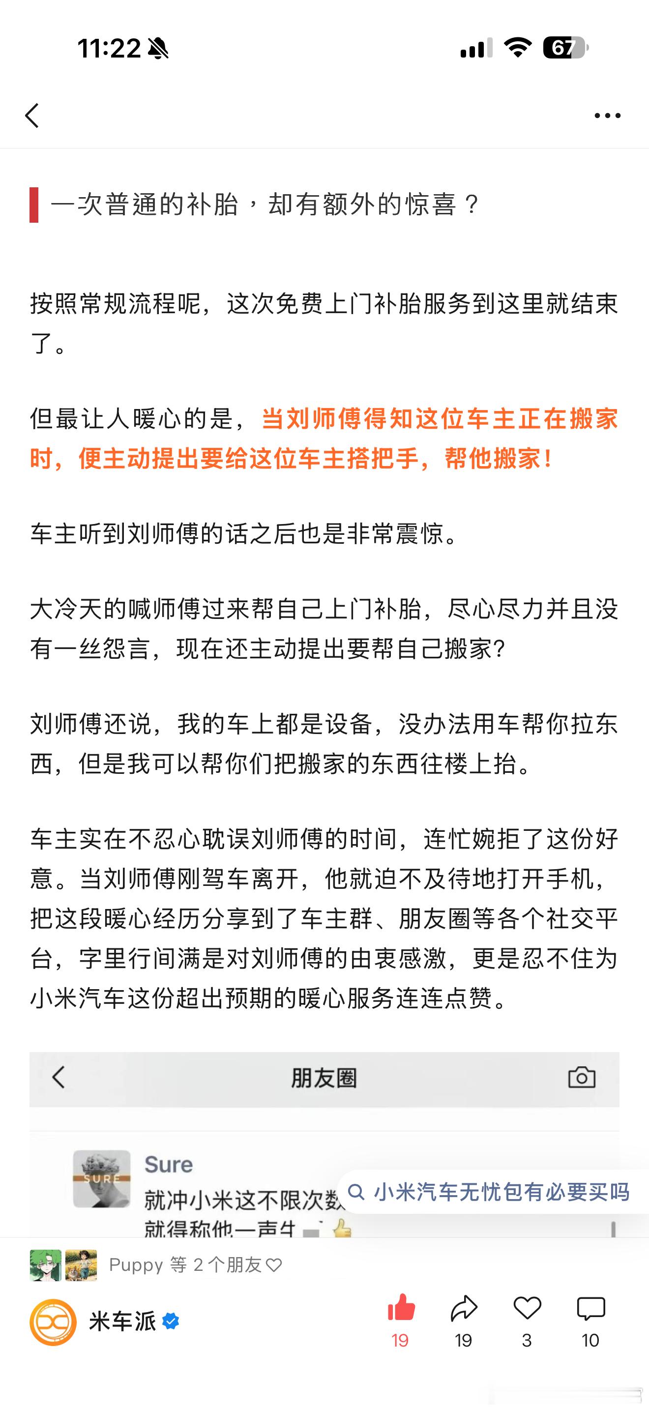 小米无忧包的服务确实到位,24小时上门补胎已经很极致了,没想到还给帮忙搬家!为邯郸小米售后刘师傅点赞👍🏻徐同学助手小米汽车