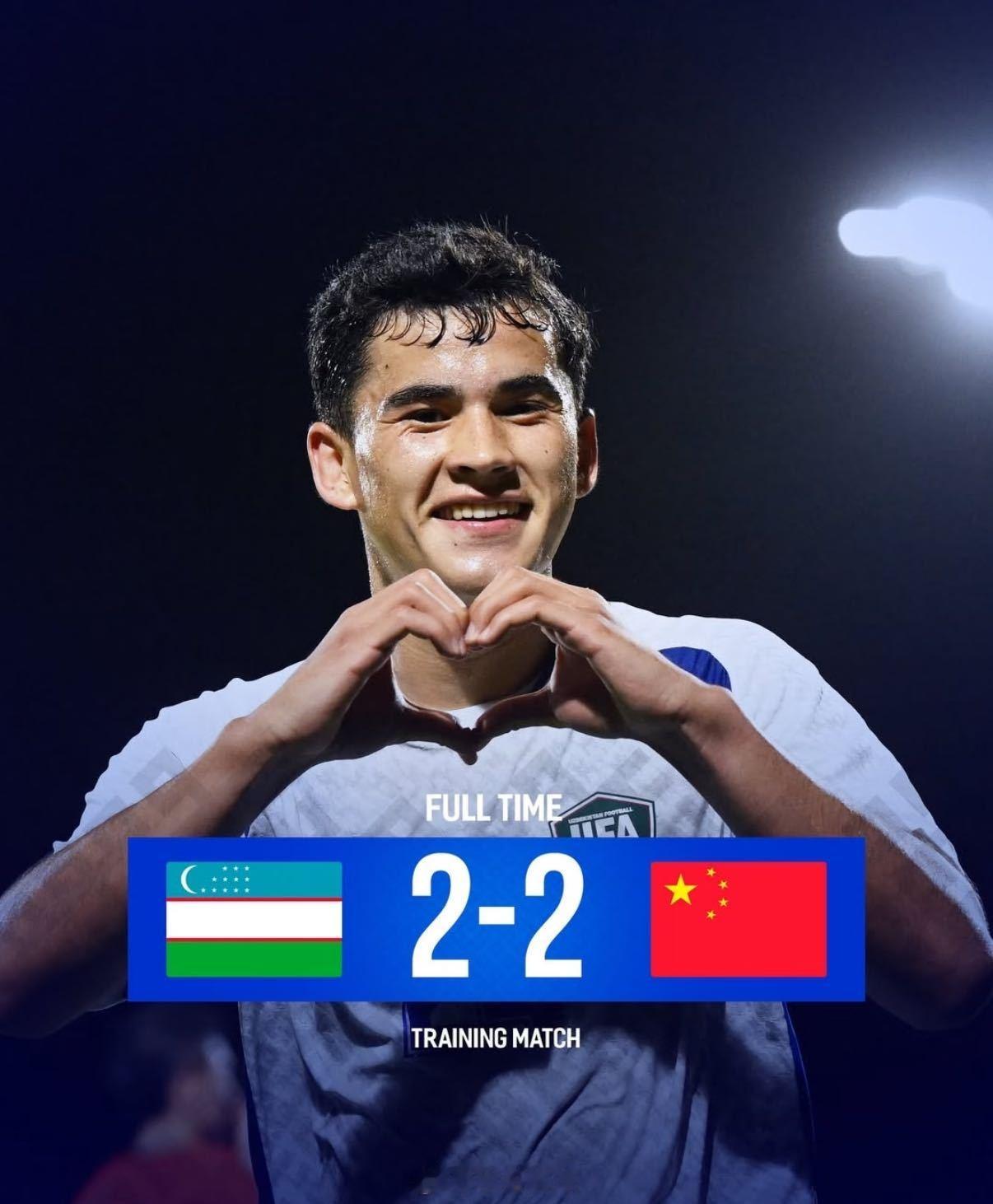 国足热身赛2比2乌兹别克斯坦迪拜拉练收官战国足2-2战平对手,林良铭点射谢文能破门,末节被连追两球,终以1胜2平不败收官。