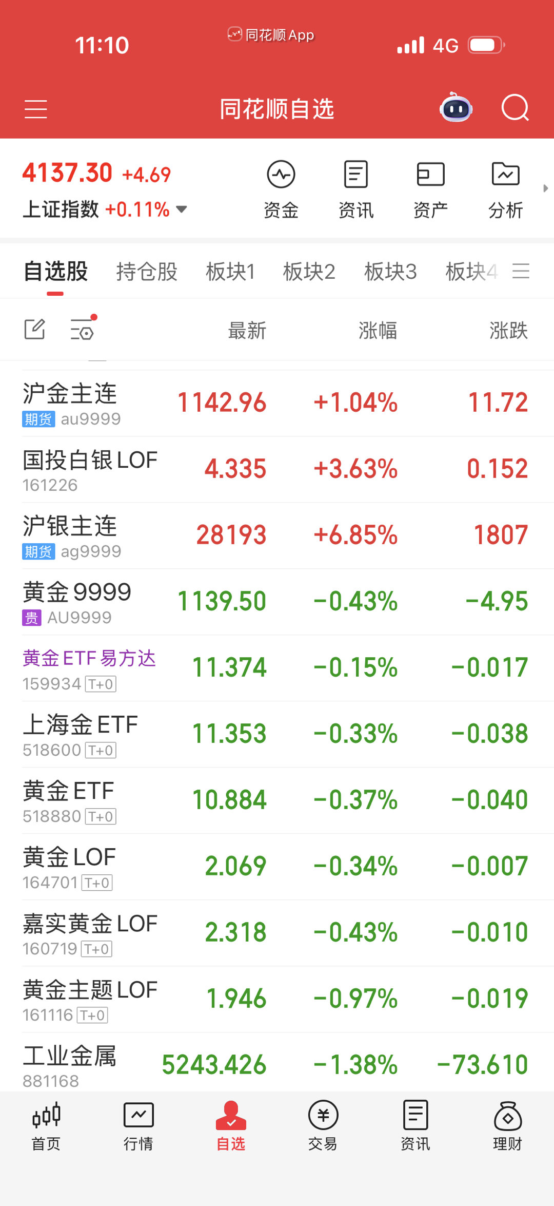 分享今天A股之感悟,黄金概念终于低下了那高贵的头,上证指数是不是调整到位了呢?