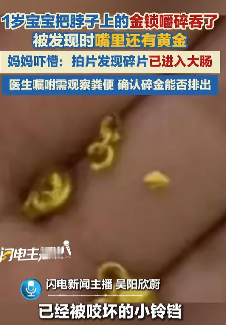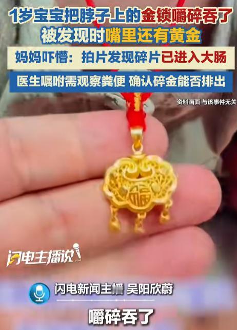 [微风]“太吓人了!”近日,贵州贵阳,一女子准备睡觉时,突然听到儿子嘴里在咀嚼东西,她开灯一看,发现孩子竟然把脖子上金锁的铃铛给咬坏了,嘴里还有黄金,这把她吓坏了,赶紧带孩子拍片检查,医生却告知黄金已进入大肠!网友:真正的“吞金兽”! 午夜12点,贵阳的夜色浓得像一块遮天的大幕。刘女士刚刚按下卧室的开关,屋里瞬间陷入了一片黑暗。 按理说,到了这个时刻,周围应该是万籁俱寂,寂静得只能听见自己的呼吸声。 突然,她听到了一种奇怪的声音。 “咔哧,咔哧。” 那声音并不像是有人在磨牙,反而像是金属在被小嘴巴咬合的特定频率下被压碎的声音。 这不正常,绝对不正常,灯光亮起的瞬间,眼前的景象让刘女士的心脏几乎停跳:她1岁5个月大的孩子,脖子上那条原本象征着全家人祝愿孩子长命百岁的金锁,现在只剩下光秃秃的部分了。 那原本有着三个小铃铛的金锁,已经被完全摧毁,铃铛的碎片消失在了孩子的喉咙深处。 网络上那个所谓的“吞金兽”的说法,也不过只是个恶搞的梗,但这一刻,刘女士面对的却是真实的。 她几乎是疯狂地伸手去抠,想把那些残留的金屑从孩子口中拿出来,但谁也不知道有多少已经悄悄滑进了食道里。 那一夜,刘女士几乎没有合眼。 第二天早上,孩子拒绝吃奶、拒绝吃饭。 作为母亲的她,内心几乎崩溃,这几乎等同于“食道受伤”或者“异物卡在喉咙里”的信号。 她抱着孩子几乎是飞奔着冲进了医院,拍片时她的手在不停地抖。 X光片被放到灯箱上,身体内部的情况一目了然。 医生指着片子上那个高亮的区域,给出的答案却出乎意料:居然是在大肠! 那一刻,刘女士长舒了一口气,原本紧张的气氛瞬间缓解。 医生甚至笑了出来,像是所有的焦虑都随着那一笑消散了。 金属的黄金因为它化学稳定性高,而且质地较为圆滑,竟然并没有卡在孩子的幽门,反而顺利地通过了整个肠道,最后停留在了最安全的位置——大肠。 这时,医生给出的建议简直让人难以相信:“回家等着它自然排出来就好。” 刘女士如同从鬼门关走了一遭,算是捡回了一条命。 可并不是所有家庭都会有如此幸运。 这个看似荒诞的故事背后,是一组令人震惊的数字:中国每年约有5万名儿童因为误吞异物被送进医院,而其中80%是1到3岁的孩子。 这个年纪的孩子,正是用嘴巴来探索世界的时刻。 父母为了孩子的健康和长寿,总喜欢给他们戴上金锁,银镯,图个吉祥,但令人讽刺的是,那些细小的铃铛,小配件,反而成了悬在孩子脖子上,随时可能掉进喉咙里的“达摩克利斯之剑”。 如果这次孩子吞下的不是金锁的碎片,而是带有腐蚀性的纽扣电池。 或者是那些能轻易穿透肠道的磁力珠,结果绝对不会是“回家等待”的简单情节,而很可能需要立刻进行急救手术。 对于家长来说,真正值得依赖的护身符,从来都不是脖子上挂着的几克黄金,而是你能否在“咔哧”声响起之前,及时察觉那些藏在玩具、饰品中的“隐形危机”。 你能否在危机发生时,判断该等待还是应立刻采取海姆立克急救法。 看着孩子没有大碍,刘女士对这个调皮的小家伙又气又笑,但那一晚的惊魂经历,却让她深刻明白了黄金的价值和生命的脆弱。 信源:闪电新闻
