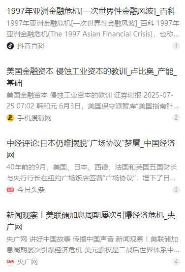 中国已经来到了和美国的总决赛,中国当下面临的威胁,是战争和收割。现在美国估计是觉得,自己有把握让我们的经济出现大的动荡,然后就能像收割苏联资产一样为美元续命。但后面如果没有按照美国设想的走下去,可能就会有铤而走险发动战争。不过中国可不是苏联,更不是日本,这场总决赛的结局,可能和美国想象的完全不一样。 麻烦看官老爷们右上角点击一下“关注”,既方便您进行讨论和分享,又能给您带来更多优质的内容,感谢您的支持! 当下的中美博弈,早已走过试探和相持的阶段,正式踏入了决定格局的 “总决赛”。美国为了守住美元霸权和美式全球秩序,把中国当成了主要目标,盘算着制造中国经济的系统性动荡,复刻过往收割他国资产的老套路,为日渐疲软的美元续命,这是明晃晃的算计。 过去几十年里,美国这套经济收割的手段屡试不爽,靠着美元霸权和金融资本的优势,把不少国家拖入经济泥潭。上世纪 90 年代,苏联解体后的俄罗斯遭遇华尔街资本围猎,优质资产被低价收割;1985 年广场协议签署后,日元被迫大幅升值,日本经济泡沫破裂,陷入长达三十年的通缩和停滞。 1997 年的东南亚金融危机,更是美国金融收割的典型案例。美联储先通过加息让美元走强,吸引大量资本回流美国,再由国际炒家精准做空东南亚各国货币,泰国、印尼等国货币大幅贬值,外汇储备告急,本土优质资产只能贱卖求生,亚洲四小龙、四小虎的经济奇迹也因此戛然而止。这些国家的遭遇,都是美国维护自身利益的牺牲品。 如今美国把这一套路对准中国,并非无的放矢。当下中国正处在经济转型的关键期,经济增速放缓,房地产行业进入深度调整期,内部发展面临着不少亟待解决的问题。而外部,美国不断加码科技封锁,对中国高端制造、半导体等领域层层设限,同时释放金融制裁的预期,试图从内外两方面制造中国经济的动荡。 在美方看来,只要能让中国经济出现大的波动,就能像收割苏联、日本和东南亚国家那样,低价攫取中国的优质资产,让美元从危机中找到新的支撑,继续维持其全球货币的主导地位。甚至美方内部不少势力认为,自己已经握有足够的筹码,能让中国经济按照他们的设想走向动荡,这也让其愈发有恃无恐。 但美国显然打错了算盘,中国从来不是苏联,更不是日本,那些国家的致命短板,在中国这里都有针对性的应对和坚实的基础。苏联解体后经济体系崩塌,产业结构单一且过度依赖能源;日本则受制于对美国的安全依赖,在经济谈判中毫无自主权,只能被动接受各种不平等条款。 中国拥有全球最完整的工业体系,从基础制造到高端研发,全产业链的优势让经济发展有了坚实的底盘。同时中国坚持资本项目的审慎管控,这道金融防火墙,能有效抵御国际短期游资的冲击,避免出现东南亚国家那样的货币危机,这是应对金融收割的核心硬实力。 面对美国的算计,中国也并非被动防御,而是主动出击挤泡沫、筑防线。国内持续推进去杠杆工作,降低经济发展的金融风险,针对房地产行业的调整,也始终坚持稳地价、稳房价、稳预期的原则,避免行业风险扩散。同时大力推动科技自主创新,突破卡脖子技术,把发展的主动权牢牢握在自己手里。 这些举措让中国构建起了坚实的对抗缓冲,美国发起的经济战、金融战,始终难以达到其预设的效果。美方试图通过加息、制裁等手段引发中国资本外流、资产贬值,但中国的经济韧性,让这些手段纷纷失效,金融市场始终保持着稳定,经济发展的基本面也没有改变。 眼看经济层面的对抗无法击穿中国的防线,美国内部的极端战略派,开始露出铤而走险的苗头,试图通过制造军事冲突,打乱中国的发展节奏,为其经济收割创造条件。这种危险的想法,也让地区的和平稳定面临着不小的挑战,中美之间的博弈,也因此增添了更多的不确定性。 但美国显然低估了中国的决心和实力,也忽视了自身的重重问题。中美之间的博弈,从来都不是一场速决战,中国的经济体量、工业基础和全国一盘棋的制度优势,决定了这场博弈必然是一场长期的拉锯战,美国想靠一两招险棋取胜,根本不现实。 更重要的是,当下的美国,早已不是那个经济结构健康的超级大国,金融化加深、实体空心化的问题,已经成为其难以摆脱的结构性困境。美国制造业占 GDP 的比重持续下滑,2024 年第三季度更是跌破 10% 创历史新低,大量资本涌向金融投机领域,实体经济发展缺乏动力。 与此同时,美国的产业空心化还带来了一系列连锁反应,半导体等核心产业产能大幅萎缩,传统工业区沦为铁锈地带,财富分配愈发不均,社会矛盾不断加剧。2008 年的金融危机早已暴露了美国经济结构的脆弱,而这些问题不仅没有解决,反而在不断加剧。