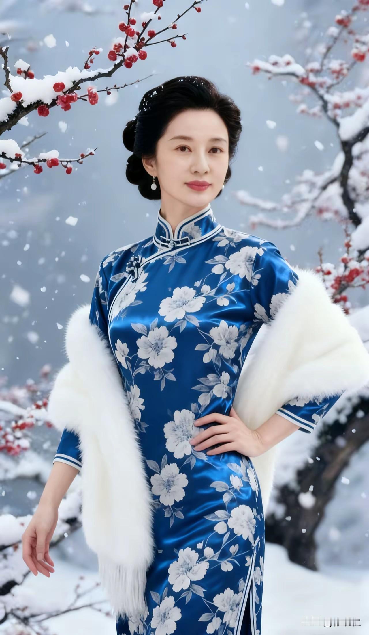 中国旗袍,东方美学。 百年传承,经久不衰。 中西融合,多元幻彩。 贴身裁剪,温婉曲线。 开叉设计,凸显性感。 花鸟祥云,牡丹刺绣。 文样丰富,韵味多彩。 旗袍雅致韵味生, 蓝底白花沾风情。