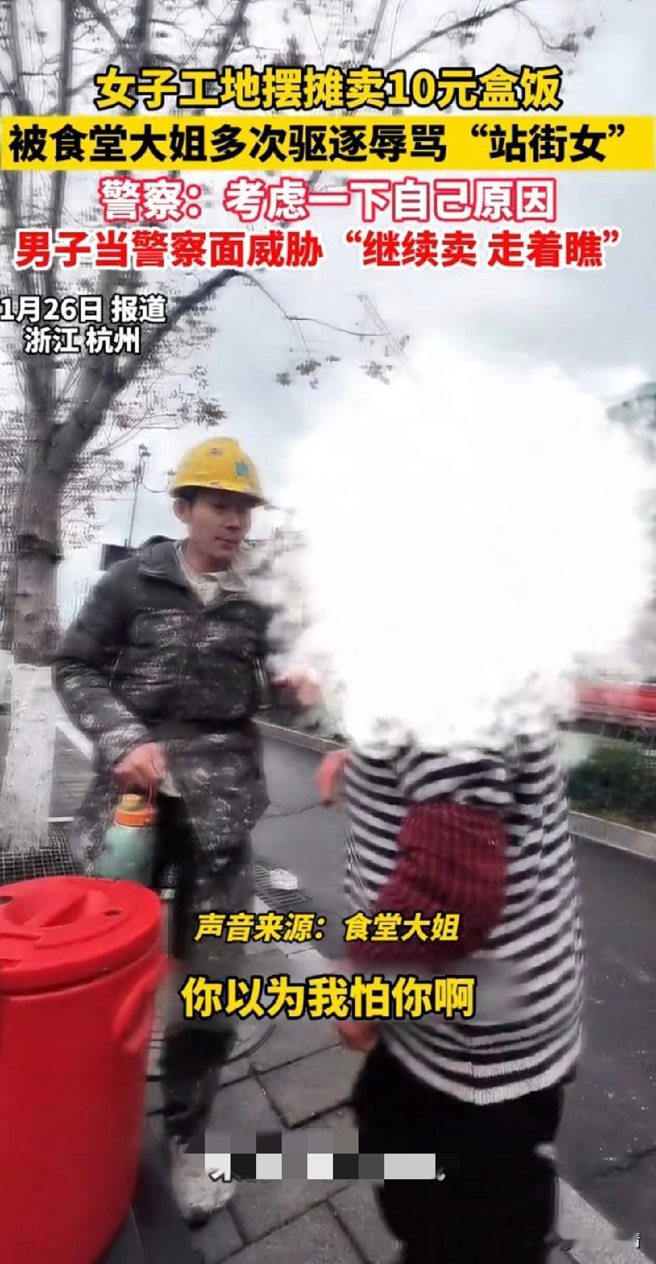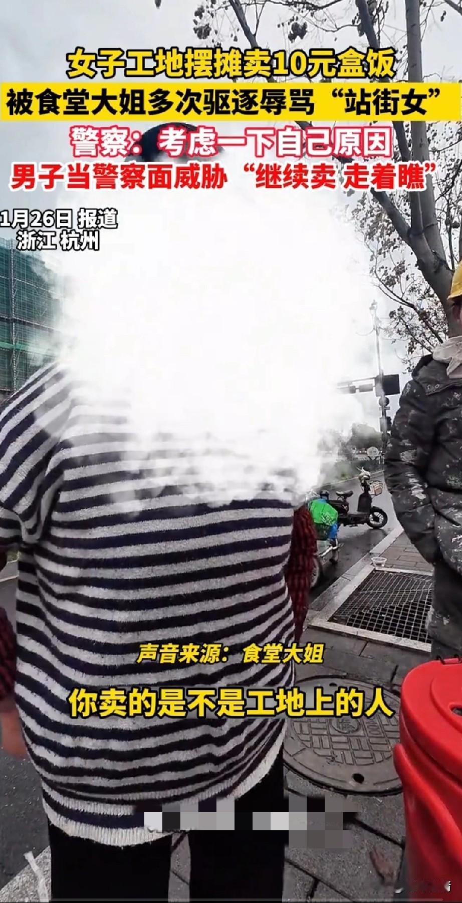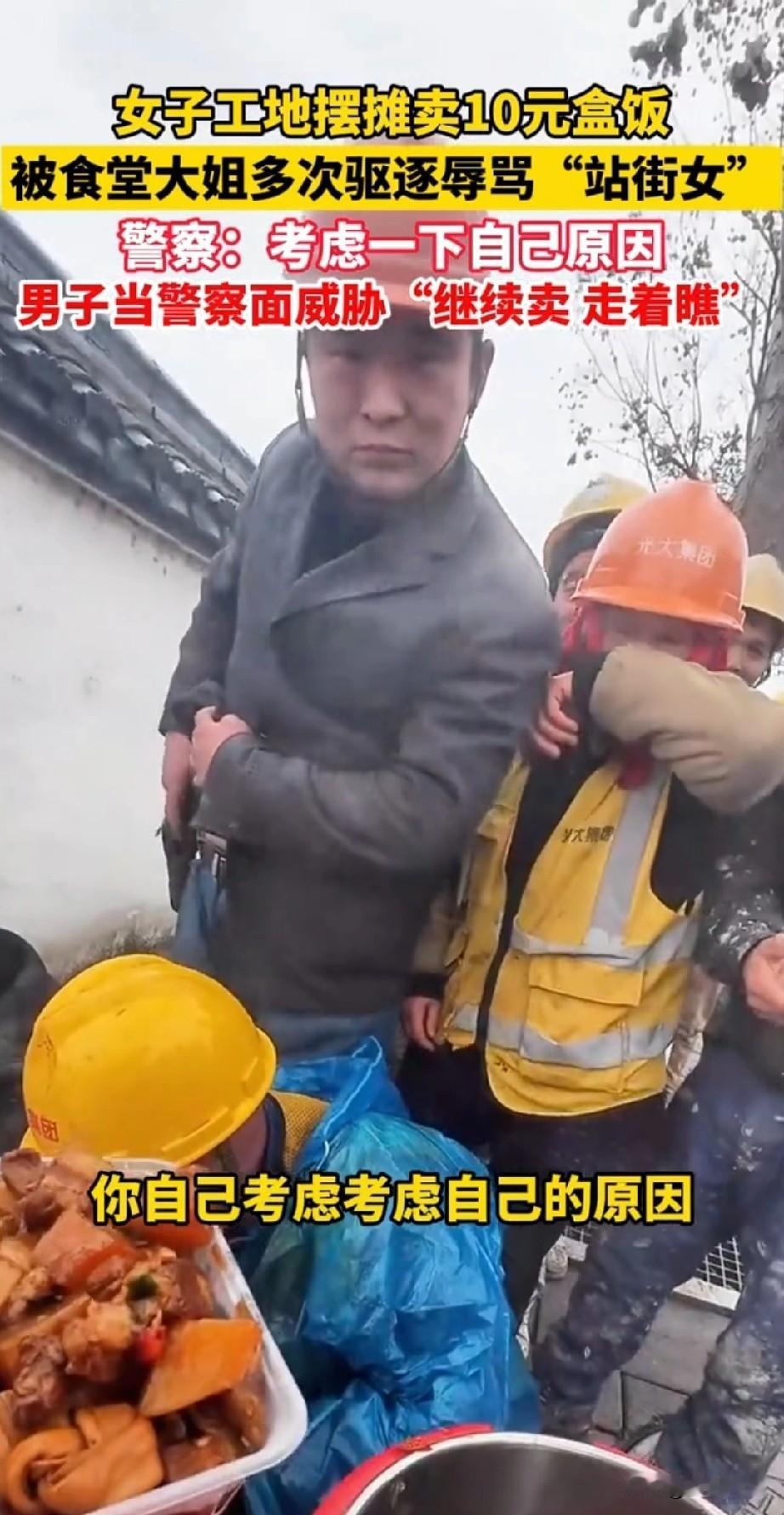 近日杭州某工地门口发生冲突,食堂大姐多次推搡卖盒饭女子,还出言辱骂,说对方是站街女! 原来女孩卖10元的盒饭,里面有肉有菜,非常划算,工地的工人也能吃饱,但是食堂大姐不愿意了! 因为她承包的工地食堂,饭菜非常难吃,而且量也非常少,关键是饭菜的价格非常贵,20元左右! 大家都知道工地的工人就是挣钱的,他们需要干体力活,吃不饱就没有力气,但是这20元左右的饭,又贵又难吃,量还少,显然不能满足要求! 看到工地外面有卖盒饭的,纷纷前去购买,这就惹怒了食堂的阿姨,她怒气冲冲的去阻止人家卖盒饭! 女生告诉她都是靠手艺吃饭,为什么要推搡她,双方争执不下,大妈还动手,女生不想和他争执,于是就将摊位放在离工地远一点的地方! 结果食堂大妈不依不饶,追了过去,还说你站在这儿就会有人给你钱,你不能在这里卖,这时旁边的工人看不下去了! 大家纷纷指责大妈,这马路又不是你们家开的,你凭什么为难人家姑娘!大妈非常厉害,还推了工人说我怕你?语气非常恶劣! 没有办法的姑娘随即报警,叔叔到达现场之后,阻止了大妈的推搡,告诉大妈有问题找正规途径解决,不能辱骂,推搡他人! 你觉得他有问题,那你就去找城管部门或者工商部门,不能在这里面胡搅蛮缠,你的饭卖不了你应该想想你自己的问题? 几句话把大妈怼的说不出话来,但是随后大妈身后跳出来一个男子,当着叔叔的面威胁女孩,要和她干到底,眼里充满了恶毒! 不过碍于叔叔在现场,两个人生气的先离开了,实际上这个矛盾并没有完全解决,相信之后还会发生更大的矛盾! 听说杭州是个文明的城市,工地面前这种事让人很无语,人家女孩又没有在工地内卖饭,是工地的人走出来自己买饭的? 食堂不反思自己的饭的问题,反而想通过赶走女孩的方式逼工人回自己食堂吃饭,真的很让人无语? 网友纷纷表示这大妈太恶毒了!还有网友表示这都是工地食堂外包惹的祸! 大家对于杭州工地食堂大妈和摆摊卖盒饭,女孩的冲突怎么看?不妨聊一聊! 杭州 食堂大妈吵架 盒饭摊贩 摆摊冲突