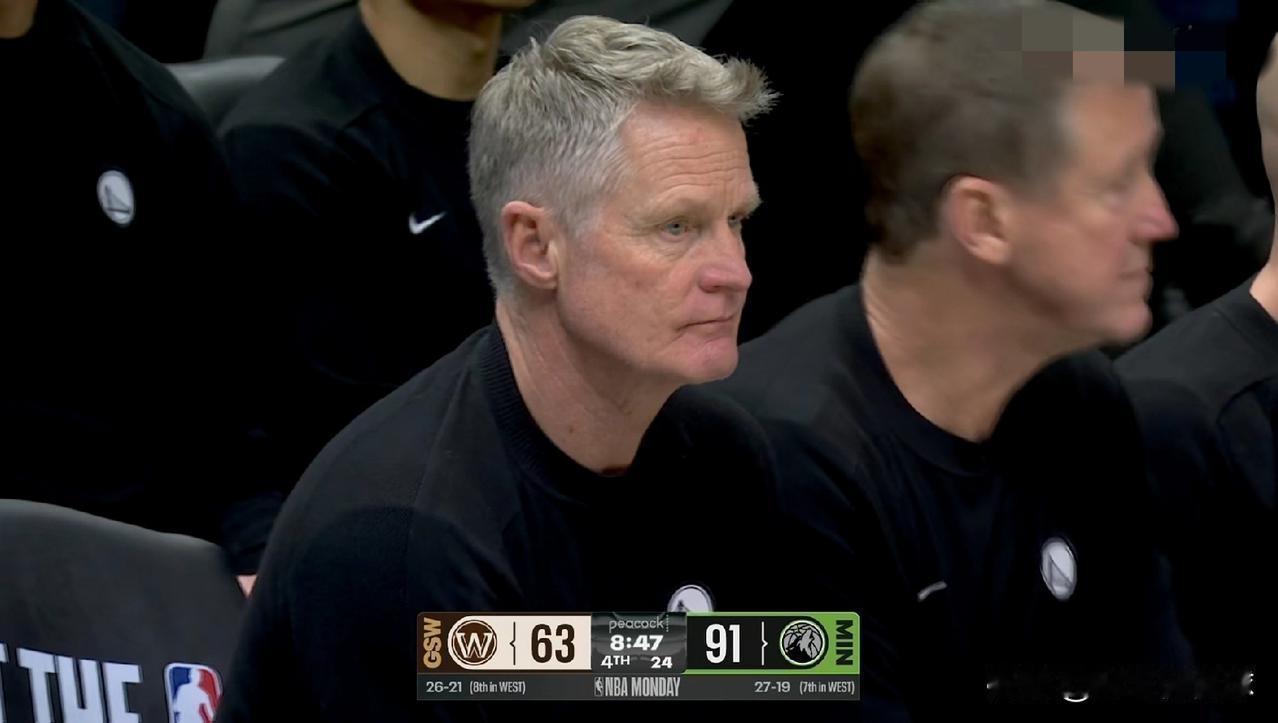 勇士主帅科尔真是巧妇难为无米之炊!在今天勇士背靠背客场挑战森林狼的比赛中,当时比赛进行到了第四节的8分47秒,勇士以63:91落后对手28分,一场血淋淋的惨败已经无法避免了。这个时候转播镜头给到了勇士的教练席,只见科尔教练极其沮丧的坐在场下,一脸的茫然和无奈。 本场比赛,勇士多名主力球员因为各种各样的原因缺阵,这让科尔教练在排兵布阵方面遇到了极大的困难,纵然科尔教练拥有非常出色的执教才能,他也巧妇难为无米之炊。