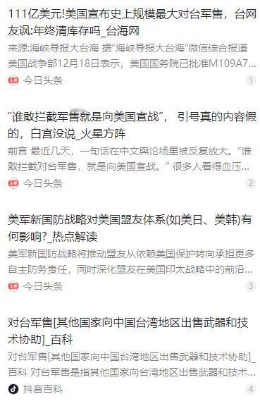 美国发出“拦截军售就开战”的威胁,面对如此嚣张的挑衅,就看你会如何有力回应?美国这回,话说得前所未有地狠,白宫刚拍板通过创纪录的111亿美元对台军售,紧接着放出狠话:“谁敢拦,就是挑衅战争!” 麻烦看官老爷们右上角点击一下“关注”,既方便您进行讨论和分享,又能给您带来更多优质的内容,感谢您的支持!   2025 年 12 月,美国国务院批准了总额超 111 亿美元的对台军售案,这是美方有史以来对台规模最大的一次军售,也是特朗普重返白宫后的第二次对台军售。近期中文舆论场流传着美方称 “谁敢拦截军售就是挑衅战争” 的狠话,实则并非白宫官方表态,而是经传播加工后的表述。   此次百亿军售包含 8 个项目,涵盖 M109A7 自走炮、海马斯远程精准打击系统、陶式导弹、反装甲无人机系统等多款装备,并非网传的反舰导弹与防空系统为主。这些武器都是民进党当局所谓 “强化防卫韧性” 特别预算中的项目,核心目标就是延缓解放军登陆节奏,刻意抬高台海冲突的门槛。   111 亿美元的军售金额,近乎台湾一年防务预算的三分之一,意味着台湾民众的大量血汗钱,要被民进党当局拿来向美国购买武器。台防务部门称该军售案完成知会程序后,还需经台民意机构审议特别预算,才能签署正式的发价书,并非一拍板就直接落地。   美国推进此次天价军售,根本不是关心台湾的安全福祉,而是把台湾当作牵制中国的棋子和地区冲突的消耗品。美方的算盘很明确,就是想通过武装台湾,让其在可能的台海冲突中多撑几天,为自己拉拢亚太盟友、出台对华制裁措施、重塑亚太地缘格局争取时间。   从本质来看,美国对台军售的行为,严重违反了一个中国原则和中美三个联合公报特别是 “八一七” 公报的规定,是赤裸裸干涉中国内政的行为。美方还总把自己的违规挑衅包装成维护国际秩序,即便此次所谓的开战狠话非官方所言,也尽显其霸权逻辑。   美方看似态度强硬,实则并非真想为台湾打一场全面战争,只是想借着这类激进的舆论造势,抬高与中国在台海问题上的博弈筹码,不断试探中国在台湾问题上的底线。这种玩火的行为,只会不断推高台海地区的紧张局势,让台湾沦为真正的 “火药桶”。   此次百亿对台军售的出台绝非偶然,而是美国近期在亚太加紧战略布局的一环。2025 年底至 2026 年初,美国持续在菲律宾、日本加速军事部署,推动美日菲三边安全合作,还在第一岛链频繁开展联合军演,对中国进行新阶段的战略挤压。   美国不仅在第一岛链部署高超音速导弹,还推动日本和菲律宾签署《互惠准入协定》,让日本自卫队能更便利地在菲律宾活动,甚至在菲常驻快速反应部队。美方试图通过编织盟友网络,打造围堵中国的军事体系,而对台军售就是这一布局中的关键一步。   在美国不断拱火台海的背景下,其显然严重低估了中国捍卫国家主权和领土完整的决心与能力。面对美方的步步紧逼,中国从不会妥协退让,台湾问题作为中国核心利益中的核心,没有任何讨价还价的空间,这是中方一贯且明确的立场。   针对此次对台军售,中方第一时间作出强硬回应,国台办和国防部发言人相继表态,坚决反对美方行径,正告民进党当局 “倚外谋独”“以武谋独” 就是自寻绝路。中方已向美方提出严正交涉,明确指出美方此举会严重损害中美两国两军关系。   解放军早已围绕台海完成了系统性的战备、演训和体系建设,常态化在台海周边开展演训活动,锤炼能打仗、打胜仗的能力。对于美方的挑衅,解放军有足够的实力和底气,挫败任何形式的 “台独” 分裂行径和外部势力干涉图谋。   除了军事层面的严阵以待,中方还有多种反制手段可用。2025 年 12 月下旬,中方已宣布对 20 家参与对台军售的美国军工相关企业及 10 名高级管理人员采取反制措施,这也是中方针对对台军售的常规且有力的反制方式。   外交抗议、制裁涉事军火商、台海周边持续性军事演训,都是中方应对美国对台军售的有效手段,且中方会根据美方的行为,不断升级反制措施。美国的军火商想借着对台军售赚得盆满钵满,就要承担起相应的后果,为自己的错误行为付出代价。   美方不断在台海问题上制造事端,试图用军售和舆论威胁的方式牵制中国发展,本质上只是虚张声势的心理战。中国实现完全统一,是不可阻挡的历史大势,这一趋势不会因为外部势力的干涉和挑衅而改变,任何逆历史潮流的行为,最终都只会以失败告终。   民进党当局妄图依靠美国的军售来寻求 “独立”,无异于饮鸩止渴。花再多的钱买武器,也买不来所谓的安全,只会让台湾的民生发展被挤压,让台湾民众陷入战争的风险之中。“台独” 分裂势力无论如何勾结外部势力,最终都只会是飞蛾扑火、自取灭亡。
