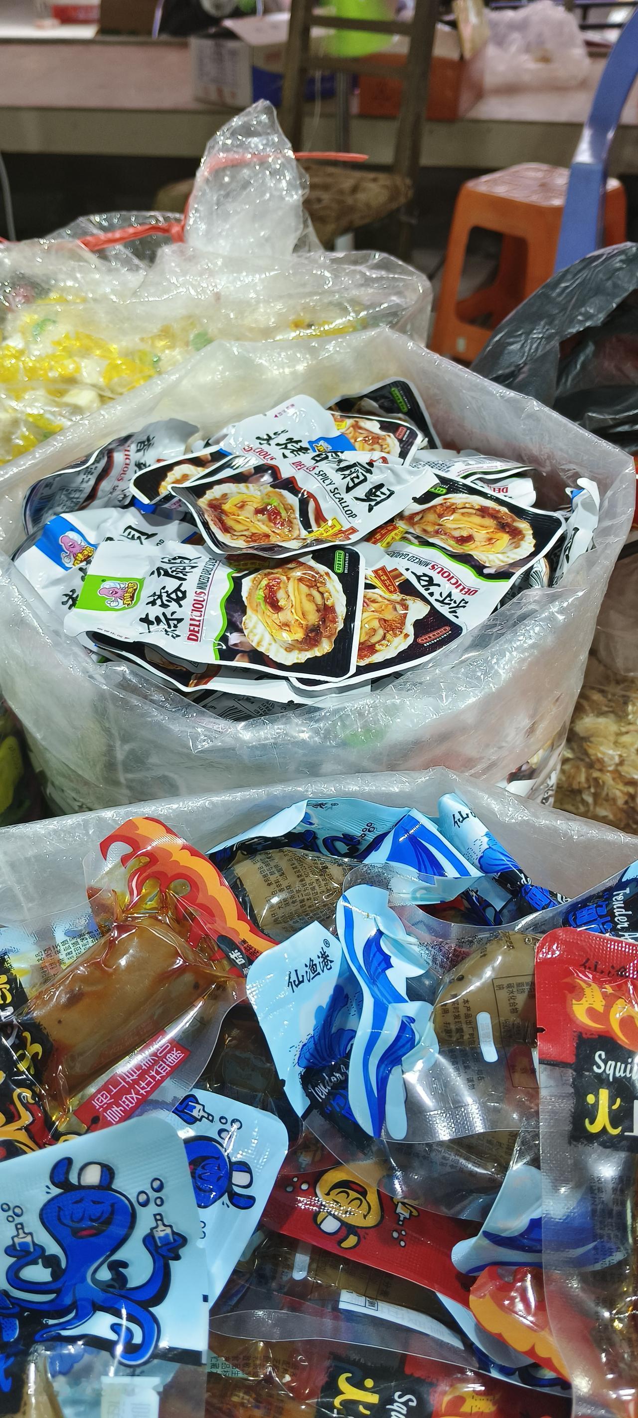 今早跑老城区的海鲜干货市场,一进门就被这几堆货勾住脚了。 最上头的是那堆半透明的小鱼干,薄得像蝉翼,黑细的鱼须支棱着,在阳光下泛着琥珀色的光。摊主阿婆说这是本地渔船刚收的水晶鱼,凌晨三点靠岸就拉到市场,摊在竹匾里晒半天就能收。我捏起一片搓了搓,脆得能听见声响。想起小时候外婆总用这鱼干煎蛋,热油下锅的瞬间,鲜气能飘满整个楼道。现在自己做饭,偶尔也抓一把泡软了炒青菜,比放味精还提鲜。 旁边的鱿鱼干堆得像小山,表层带着层白花花的盐霜,是北海过来的船晒货。阿婆用指甲划了下鱼身,硬邦邦的肌理里透着紧实。“这是深海大鱿,晒足三天才出摊,烤着吃最香。”她边说边给我演示,用剪刀把鱿鱼干剪成细条,撒点孜然粉放平底锅一烘,滋滋冒油的焦香混着海风的咸,瞬间勾得人咽口水。以前看球的时候,总爱跟朋友分一包烤鱿鱼干,咬得腮帮子发酸也停不下来。 最热闹的是底下两筐即食零食,蒜蓉扇贝、麻辣鱿鱼仔、炭烧鱿鱼丝挤得满满当当。包装上的卡通章鱼吐着泡泡,是本地工厂做的货。阿婆说现在年轻人不爱等,抓一包就能揣包里走,追剧、逛公园都能啃。我拆了袋蒜蓉扇贝,贝肉弹嫩,蒜香裹着鲜,比大排档现炒的还入味。想起上次带同事来逛,小姑娘们直接拎了半筐,说要当办公室下午茶。 阿婆守这个摊快二十年了,从最早摆竹篮卖散货,到现在给零食装小袋。她说以前客人都是买回去煲汤、焖菜,现在年轻人既爱传统干货的老味道,也爱即食零食的便捷。这些海味没变,变的是吃法。水晶鱼干还是当年的晒法,鱿鱼干还是渔船直供的品质,只是多了些新包装,让老味道能跟上新节奏。 其实不管是晒了半天的小鱼干,还是烤得焦香的鱿鱼干,又或是开袋即食的扇贝,藏在里面的都是海边城市最本真的烟火气。它不是什么山珍海味,却是能让你在忙碌里停下来,咬一口就想起家的味道。 各位读者你们怎么看?欢迎在评论区讨论。