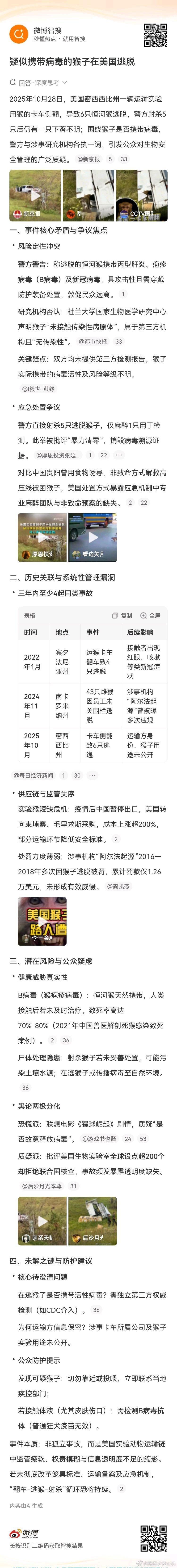 中方坚决反对将疫情甩锅中国美国将新冠疫情甩锅给中国,用心险恶,且坚持不懈。当初的形势比现在严峻很多。作家方方《武汉日记》在境外出版,轰动一时。世卫组织两次派专家到武汉搞新冠病毒溯源。多个国家政要以中国隐瞒疫情为借口,发表向中国巨额索赔的言论。这口锅如果甩到中国头上,扣实了,中国将赔得倾家荡产都赔不完。好在美国实验室病毒泄露事件,以及海外生物实验室研制病毒事件曝光,制造病毒的幕后黑手越来越清晰。加上美国实验室猴子外逃事件,连续发生,外界才发现,美国其实才是那个想利通病毒达到险恶目的的国家。只要有美国实验室的猴子外逃,隔不了多久,就会有神秘病毒现身。这不,最近一次美国实验室猴子外逃事件发生在2025年10月28日,最近印度一地就出现了致命的尼帕病毒。也许只是巧合,但巧合的事情如果多次发生,人们还会认为是巧合吗?