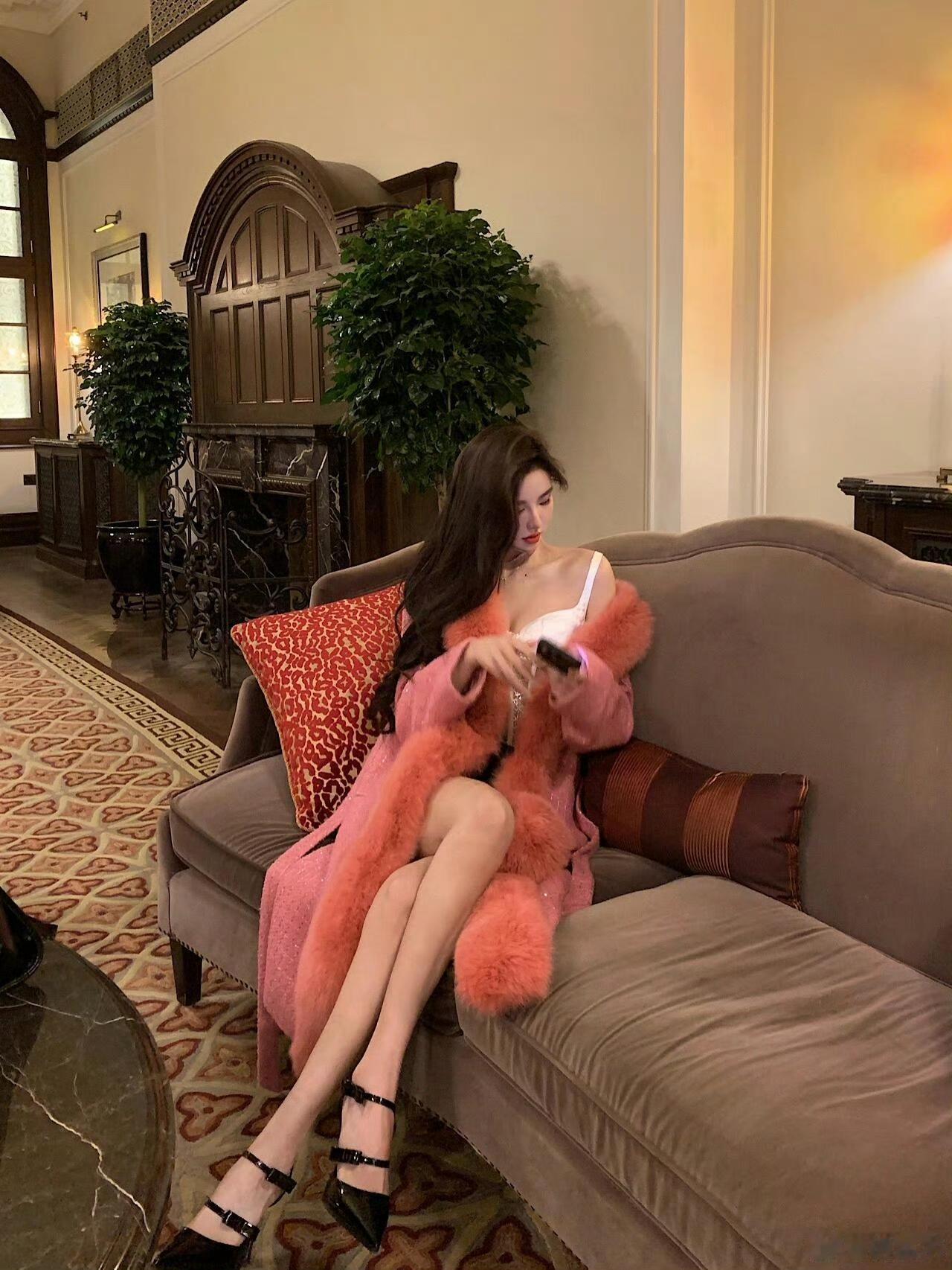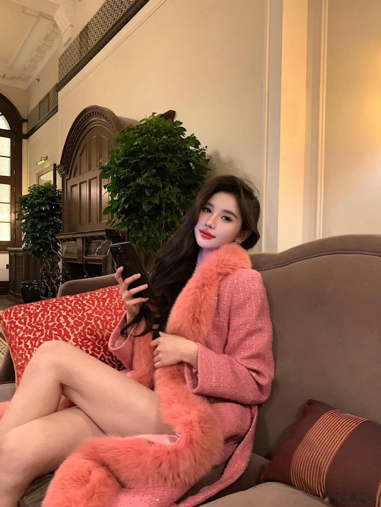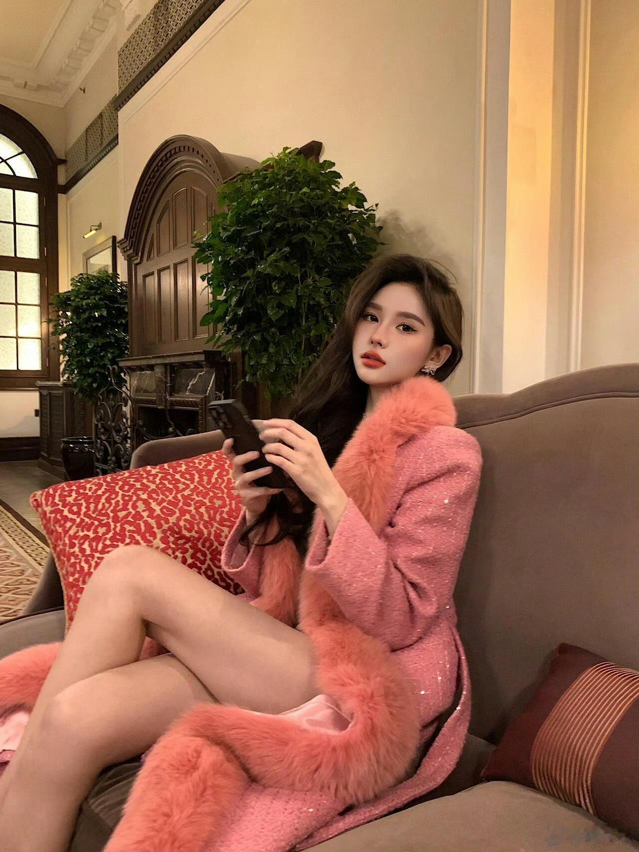温柔粉嫩少女风,粉色毛衣搭配蕾丝围巾,甜美动人!💖✨