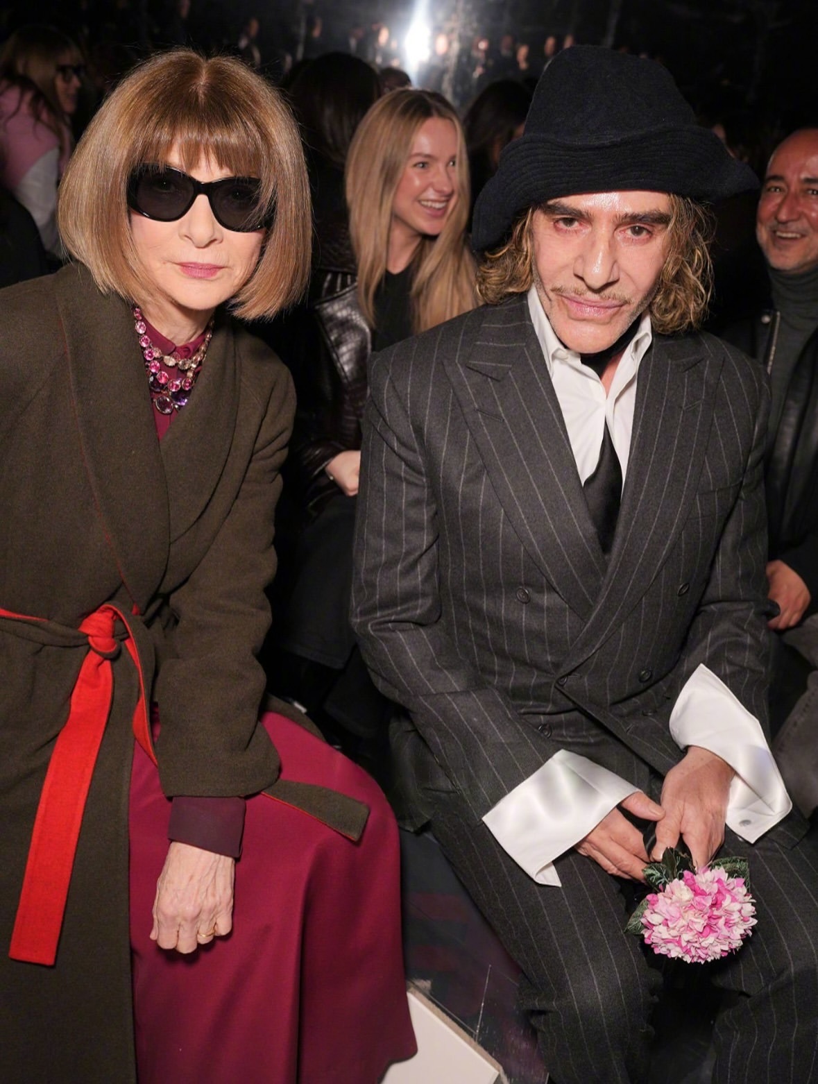 出席Dior 2026 春夏高订系列发布秀的安娜·温图尔和海盗爷-约翰·加利亚诺,几十年的老友同框!安娜身穿的这件大衣是Dior 2026早秋系列的专门定制款。巴黎高定时装周