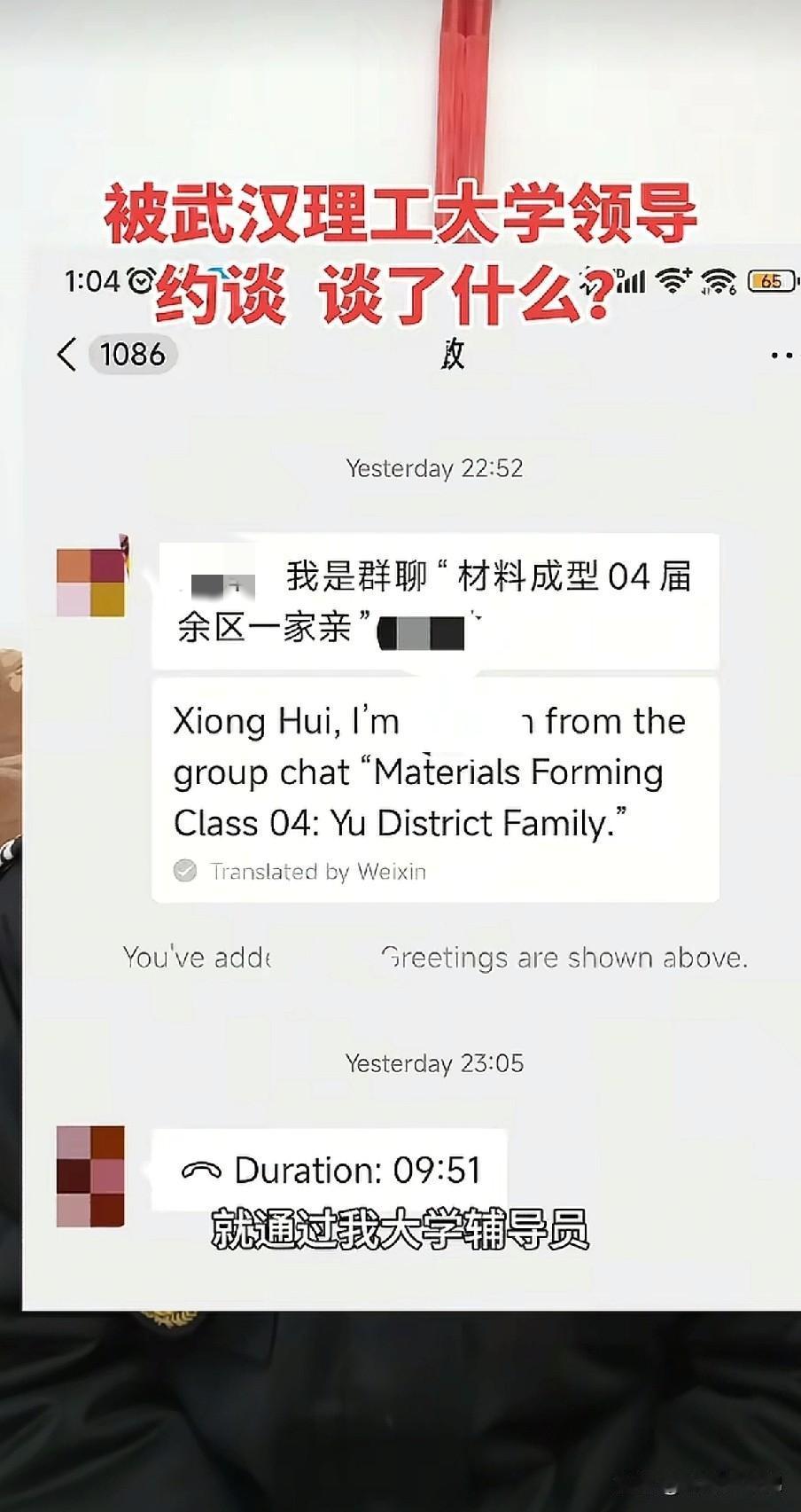 这位博主因为公开自己现在在当保安,而被母校武汉理工大学约谈,领导说,可以继续讲正