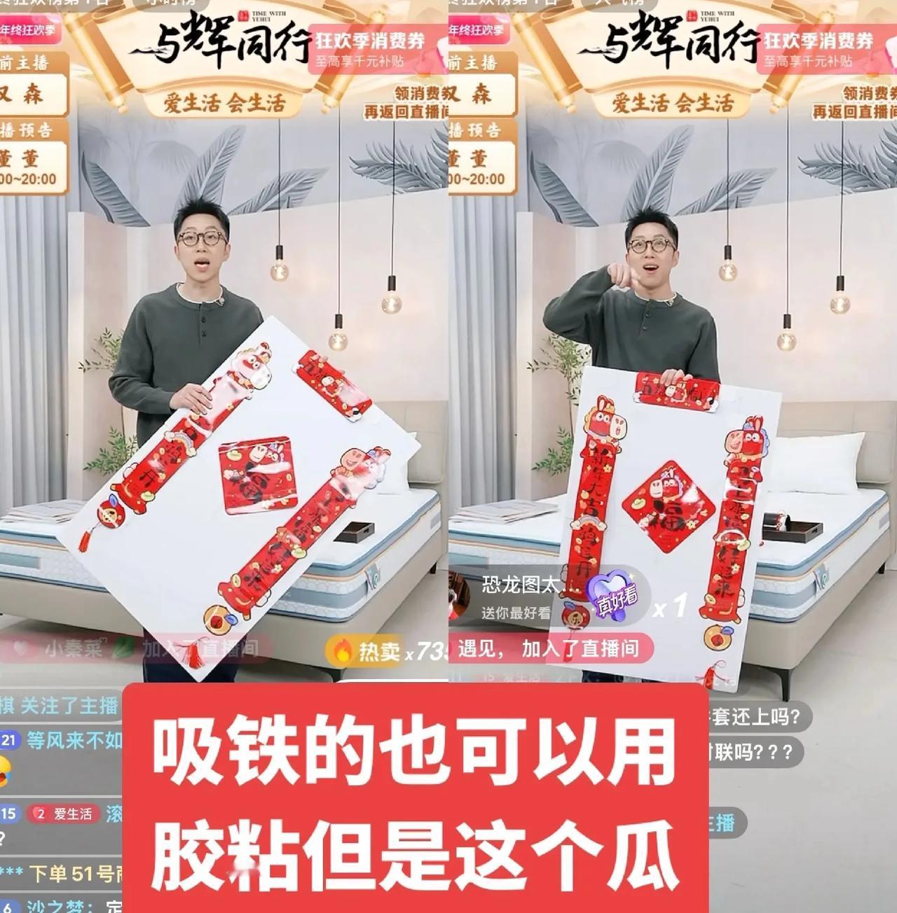 对联也在直播间卖吗?之前卖农产品是助农,卖对联是啥?当然对联谁都可以卖不假,关键是你卖什么都火的情况下,尽量卖一些价格高的比较好,这种小钱留给寒风中瑟瑟发抖的小商贩比较好点儿,你卖啥都火,而他们只能卖对联。
