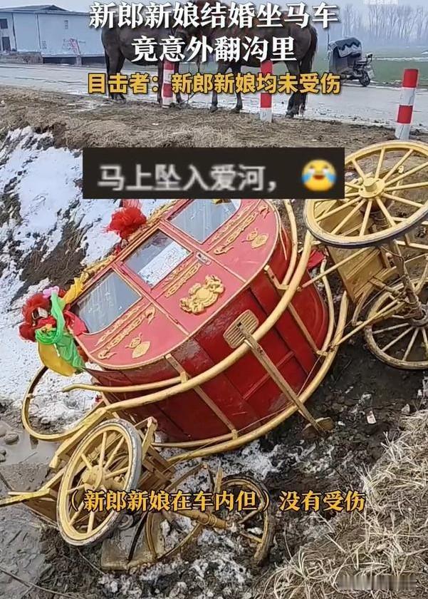 腊八婚车走复古,却翻进沟里?河南周口一对新人坐马车迎亲,现场从喜庆到揪心只用几秒。好在人马都稳,虚惊一场。 1月26日,马车突然侧滑入沟。目击者曹先生称,马未受惊,新郎新娘只是受了惊吓,身体无碍。围观网友打趣,这波算是马上坠入爱河。 乌龙一幕,成了婚礼的记忆点,也提醒大家:传统仪式有味道,也有风险。 建议婚庆公司提前踩点,安排专业马车队,设引导员,选平整路段;必要加防滑绳,应急车跟随。新人追求新鲜可以,但安全先行,别把浪漫交给运气。 下一步当地应梳理婚车安全规范,加强路线审核,减少类似意外,让喜事别变事故。