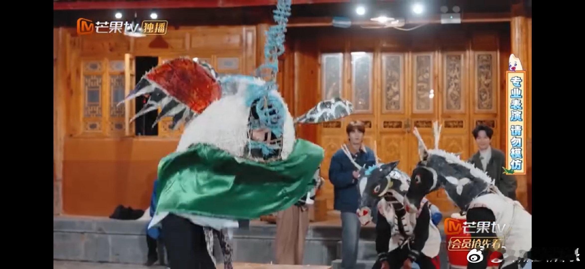 陆虎做人做鹤都很会饭撒快乐老友记 快乐老友记的舞台惊喜!陆虎把饭撒带到麒麟舞,化身仙鹤摇动机关,沿着观众座位互动饭撒,活灵活现超有料~