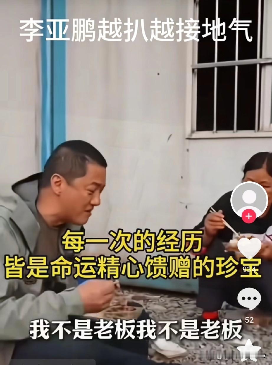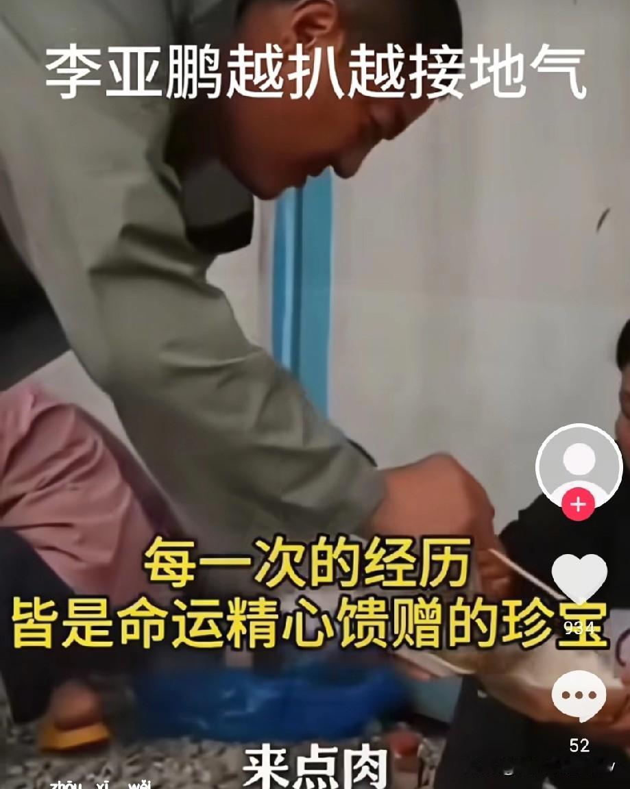 51岁李亚鹏蹲工地吃盒饭分肉,一个动作让全网破防:这才是真接地气! 视频中李亚