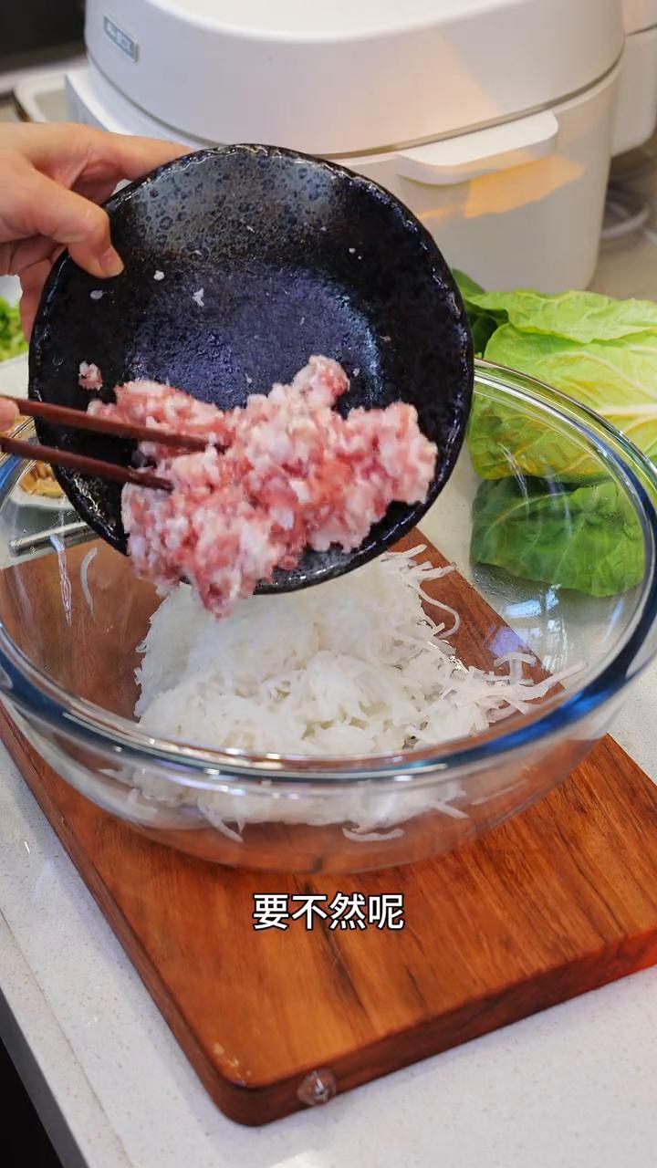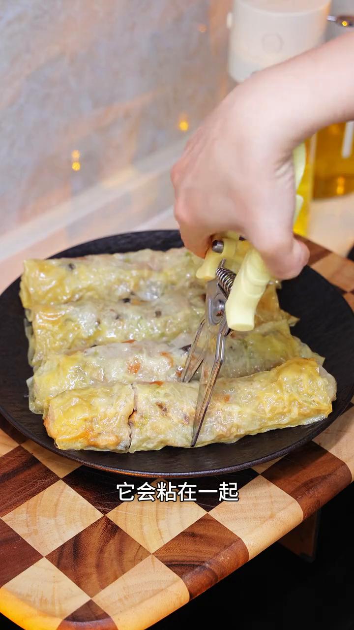 冬天正是吃萝卜的季节,如果你家里刚好有一根萝卜,那就来试试潮汕的萝卜卷章,超香超好吃。 ·萝卜刨去皮,再擦成丝。我今天是用了两根萝卜,这个丝擦的粗一点口感会更好。再加上两小勺盐拌一下,腌20分钟左右。 ·我还准备了一些熟花生米、香菇丁、芹菜碎,还有半斤的五花肉末。萝卜杀出水了之后把水分挤掉,要不然不好成型。 ·再把刚才准备好的配料都放进来,调味就再少少的补点盐跟胡椒粉,再来上两勺红薯粉,放多少没有特定的,粉多了吃着就硬,粉少了吃着就软乎。 ·这个是叫豆腐皮,不是腐竹,腐竹是卷不起来的,就是这样子的,它是可以一张一张的撕开,而且大小也是裁的刚刚好。市场上也有那种很大张的,买回来自己再裁一下也行。 ·萝卜馅料放在豆腐皮的一头,边上抹了一点淀粉水,再卷起来。两边的口折起来会好看一些,不会折也没关系的,没多大影响,它是不会漏的。我一共是卷了有6条,还吃不到可以放到冰箱去冷冻,要吃了再蒸熟就好啦。 ·上锅大火蒸15分钟,水开后再算时间,放的时候也别摆的太密了,要不然豆腐皮会粘在一起。 ·出锅之后剪成小段就可以直接吃了。 这个口感就是鲜甜软糯的,也可以放凉了之后切小块再煎一下。我就更喜欢吃这种煎到表皮酥酥的,里面还软软糯糯的口感,真的好香的。 这是潮汕家家户户都会做的萝卜卷章,过年的餐桌上也会备上一盘的,喜欢的朋友们也可以去试一下。 点赞关注收藏。