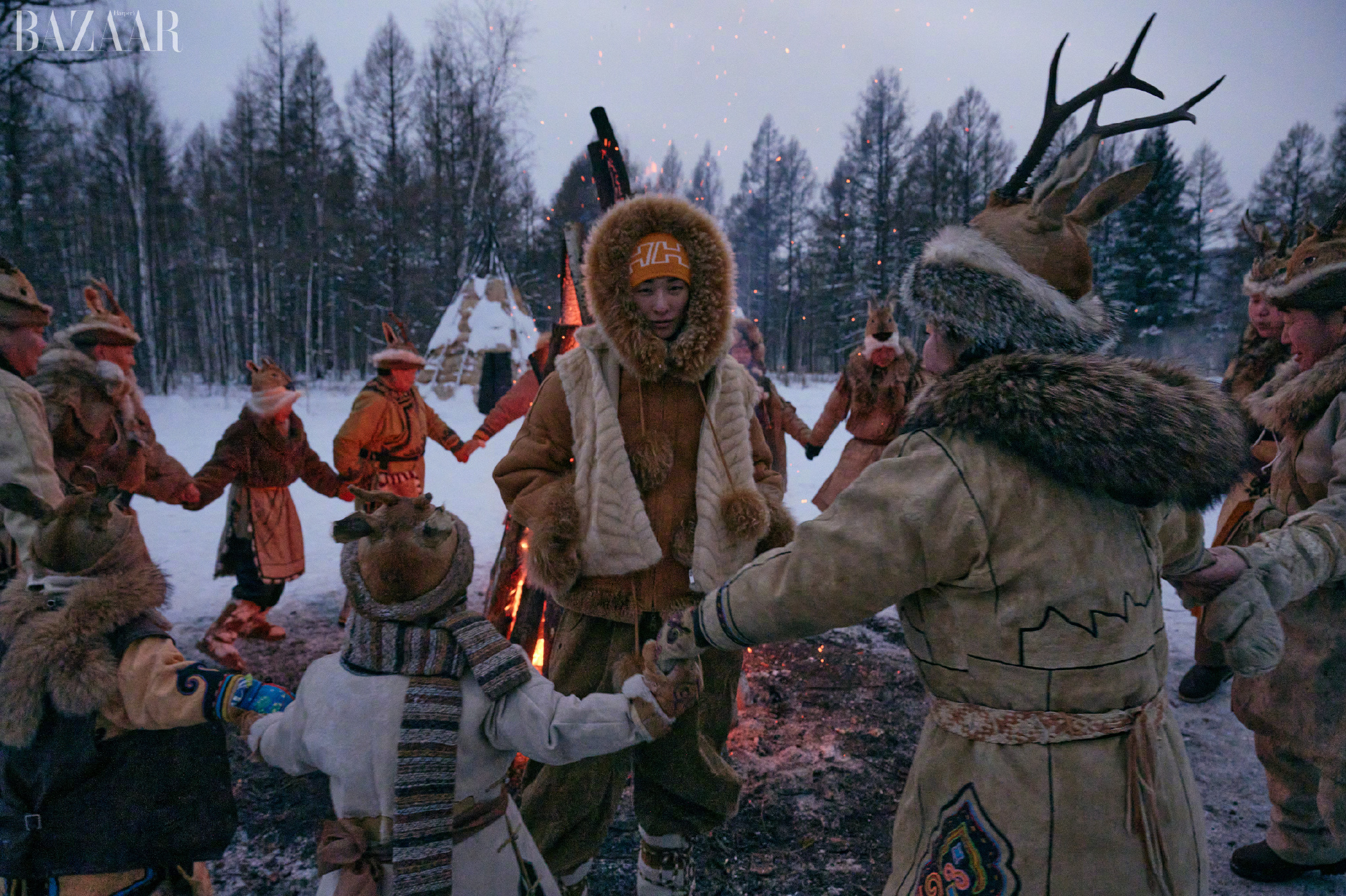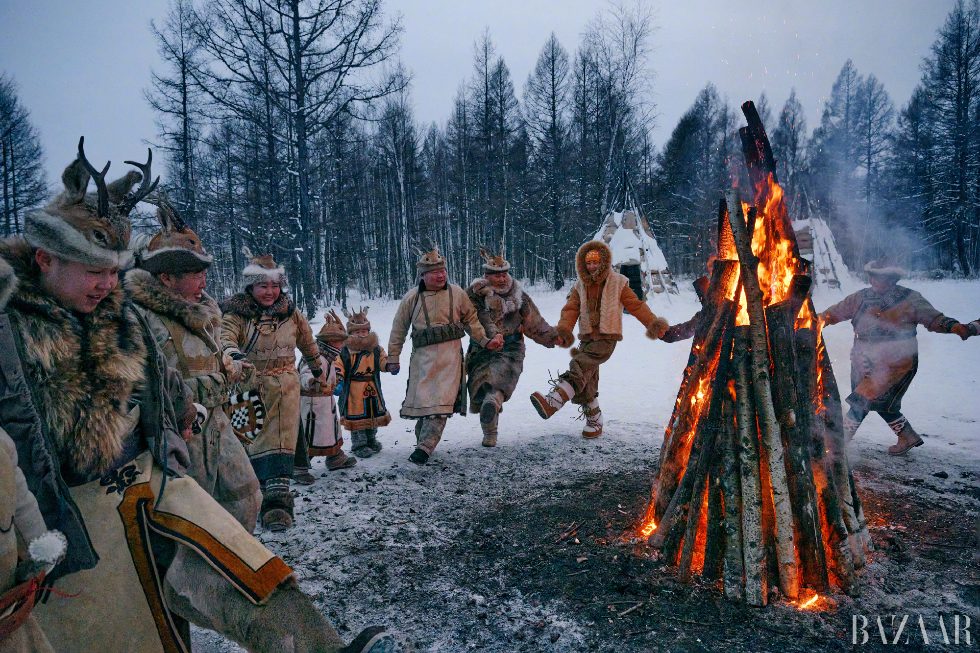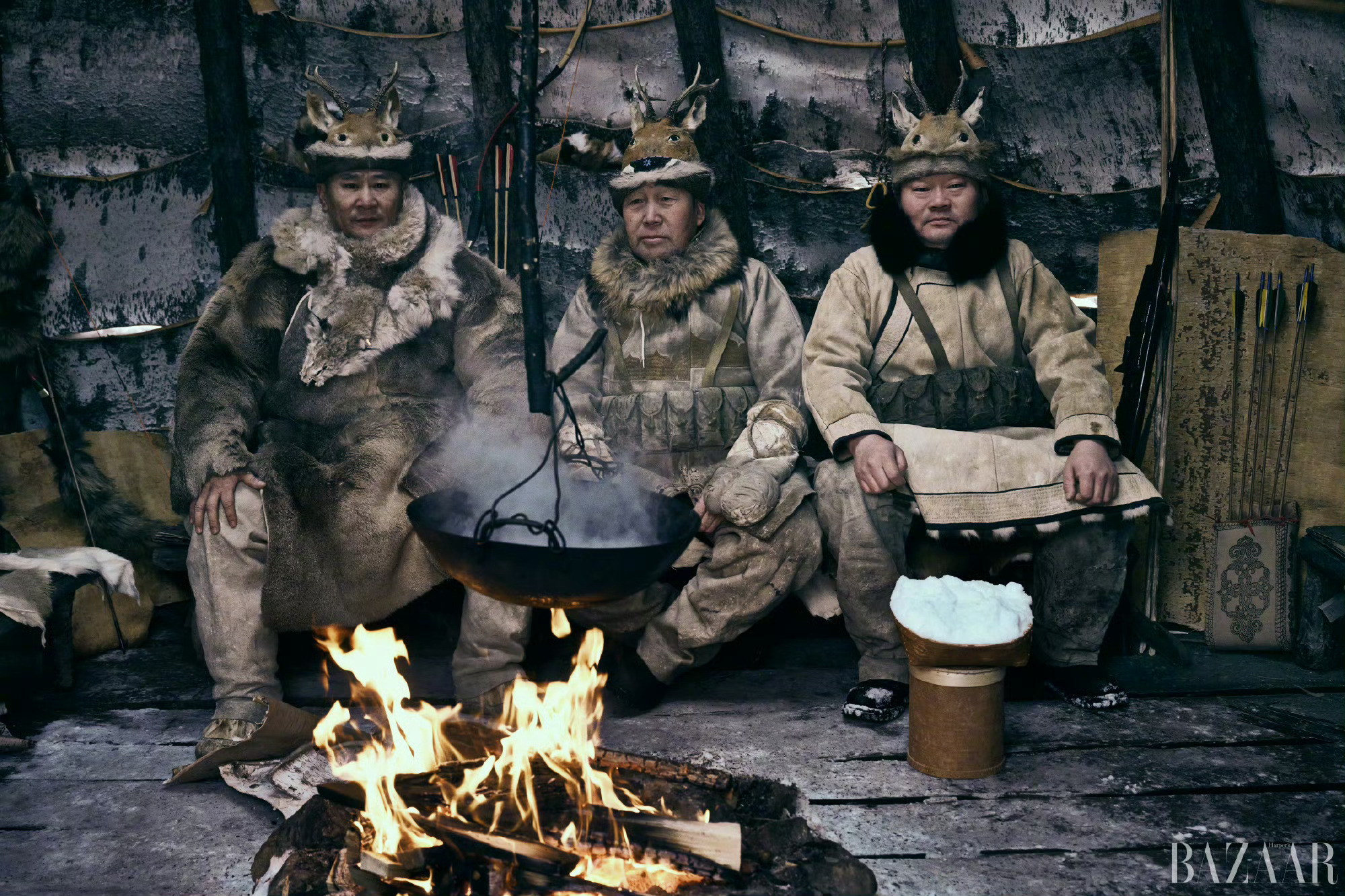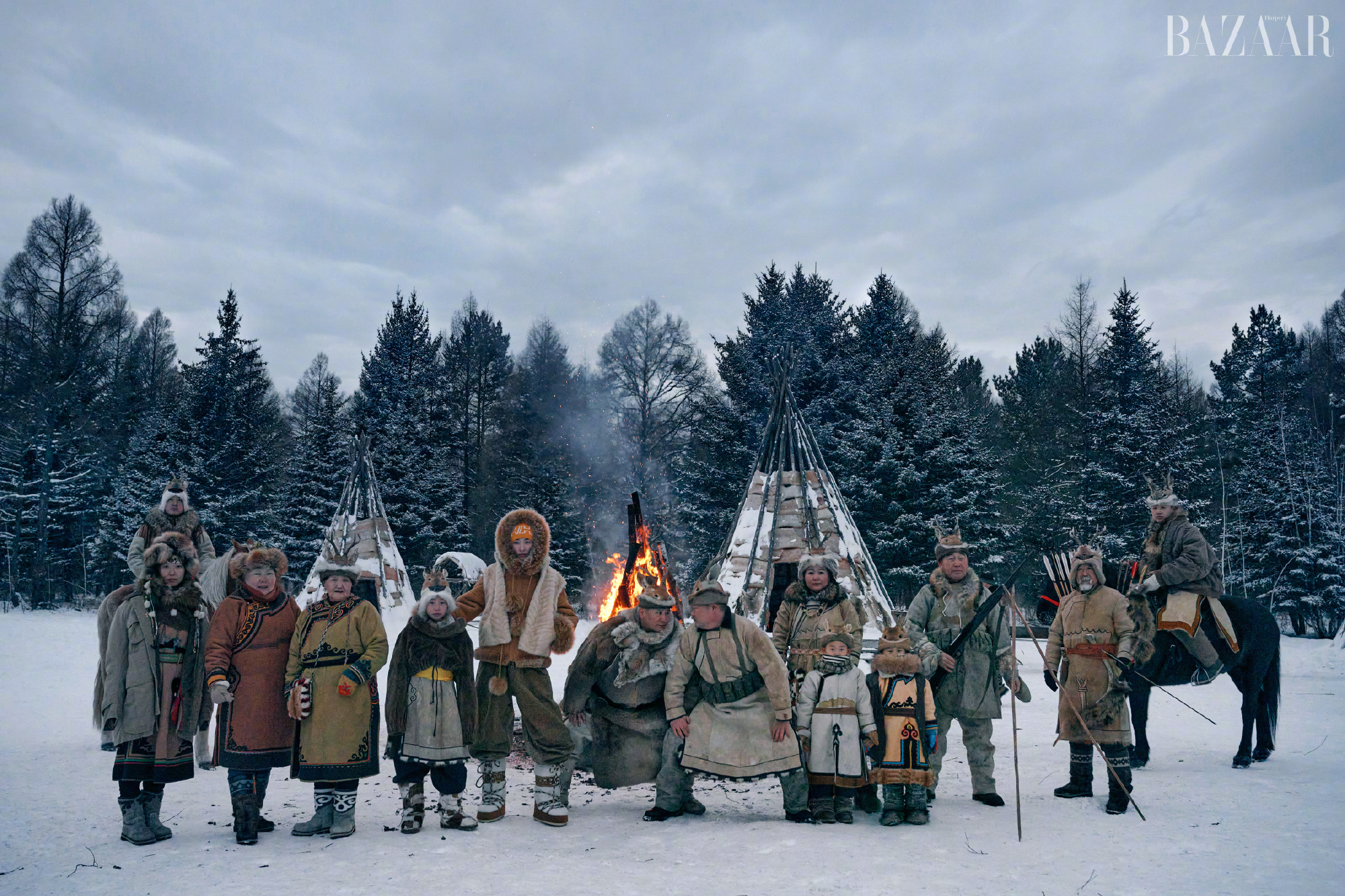 时尚芭莎二月刊汪曲攸游牧之歌芭莎封面大片 在大兴安岭的深处,有一片被白雪与松柏守护的寂静山林。那里,生活着中国北方最后的狩猎民族——鄂伦春。“鄂伦春”这个名字,在古老的通古斯语言里轻轻展开:一说,是“山岭里的人”;又一说,是“使用驯鹿的人”。两种解释,都像一阵温柔的风,从不同的方向吹来,却都指向同一片森林、同一条河流、同一群与猎马并肩的人。摄影/尹超