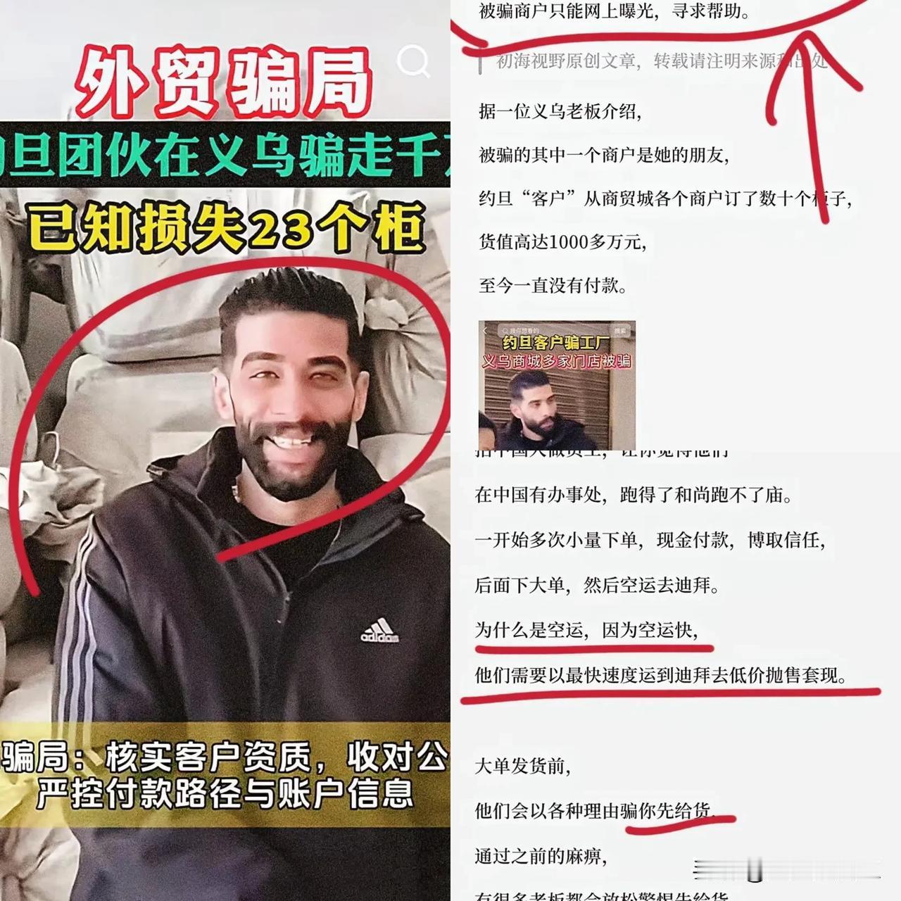 义乌老板血亏1000万!约旦客商潜伏数年卷走23柜货,生意场上别再盲目信人性 1000多万血汗钱打水漂,义乌老板直接崩溃!年初这波坑,真的太狠了! 三个约旦商人,愣是给所有做外贸的上了一课:表面上和你称兄道弟,在义乌潜伏数年,还开了本地公司装模作样,转头就卷走23个货柜,卷走超千万货款跑路! 这哪是临时起意,分明是蓄谋已久的“放长线钓大鱼”! 咱们老实生意人,总觉得相处久了有交情,赊账、先发货都是人情,可偏偏这份信任,就成了别人拿捏你的突破口。 这年头的生意场,真的别太天真!甭管是合作多年的老外,还是天天碰面的同行老板,哪怕车间机器还在转,人心早就隔了万重山,转身就能卷款跑路。 血淋淋的教训摆在眼前:不见真金白银,坚决不发货!谁的面子都别给,别让自己的一腔信任,最后换来满盘皆输,辛苦攒下的家底,全栽在“信人性”这三个字上!