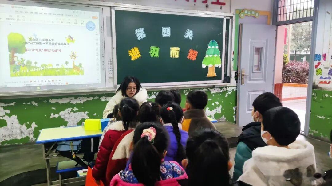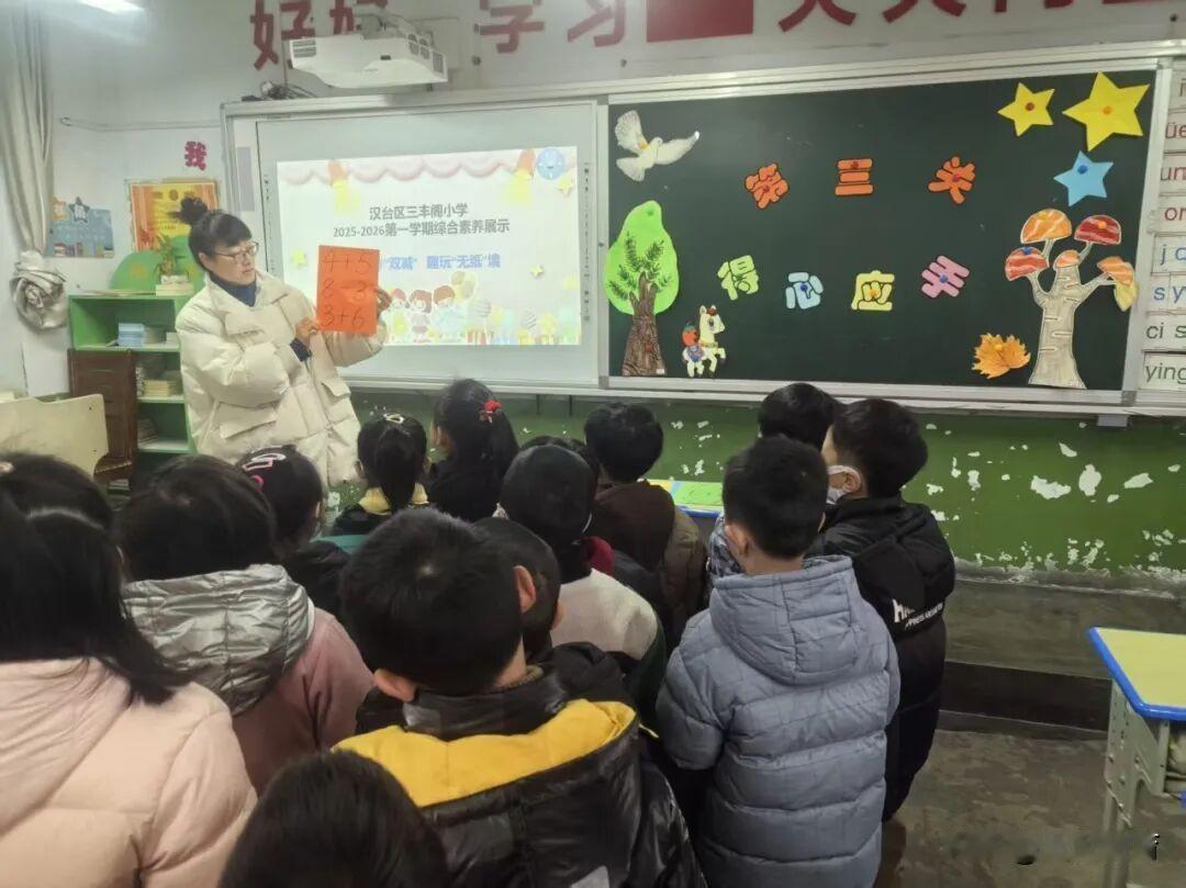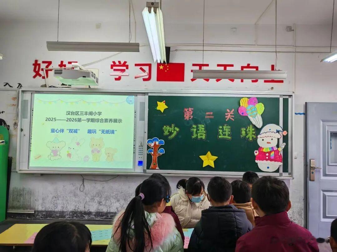 汉台区三丰阁小学一二年级期末综合素养闯关活动纪实 语文学科设置了字正腔圆、富有诗书、诗情画意、妙语连珠四个关卡,从“识字”“朗读”“积累”“口语表达”等方面展示学生的语文综合素质和能力。学生在轻松愉悦的氛围中将所学的知识通过口语表达的方式展现出来,促使学生掌握基础知识,形成基本能力,学会勇敢表达,获取成功体验。小可爱们凭借扎实的识字、口语表达能力,兴趣盎然地接受挑战,兴致勃勃地进行展示。 数学学科设置了得心应手、迎刃而解、生活易购、心中有数四个关卡。老师们将数学知识融入有趣的游戏中,引导学生通过仔细观察、动手操作、动脑思考,促进思维发展,既考查了学生的基础知识和基本技能,也考查了学生的语言表达能力和实际应用能力。一个个数学小达人们毫无畏惧,积极参与闯关挑战。每一关都是知识的试炼,每一步都是能力的成长。 音体美乐园设置了“多才多艺”环节,包括音乐、美术、舞蹈、体育等活动,孩子们跳跃的身影、灵动的歌声,美妙的画笔更是让校园充满蓬勃朝气。孩子们在闯关中体会到了学习的乐趣和满满的成就感。 闯关卡上的星星贴纸越攒越多,孩子们的笑脸也越来越甜。这场别开生面的“无纸化”测评,不仅是对一学期学习成果的趣味检验,更是“双减”政策下,让学习回归快乐的生动实践。我们相信,当学习变成一场充满惊喜的冒险,孩子们的成长之路,定会满是星光与欢笑。