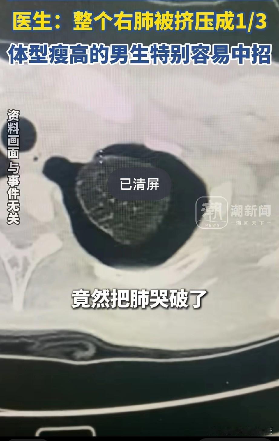 这个新闻看的我一愣一愣的!18岁少年半夜翻看和好友的合影时,因为想到再也回不到以前的时光了,就伤感的哭了。 结果这一哭要命了,直接把肺给哭“破”了。 小胡才18岁,是个感情很细腻的少年。他因为哭的太投入,突然就感觉自己头晕眼花,喘不上气来。送到医院后,小胡被查出自发性肺气肿,整个右肺被挤压成三分之一。 医生说这种病瘦高的男孩更容易得。 有网友说,我的个老天爷,这个男孩也太感性了,看看照片就哭破了肺。这是不是就叫做“撕心裂肺”。 有网友说,别小看这个气胸,发作的时候很难受的,严重了还得做手术呢? 我觉得这个小伙子肯定是个重感情又怀旧的人,和他做朋友一定很幸福。但是你念旧的同时,也要注意身体啊。