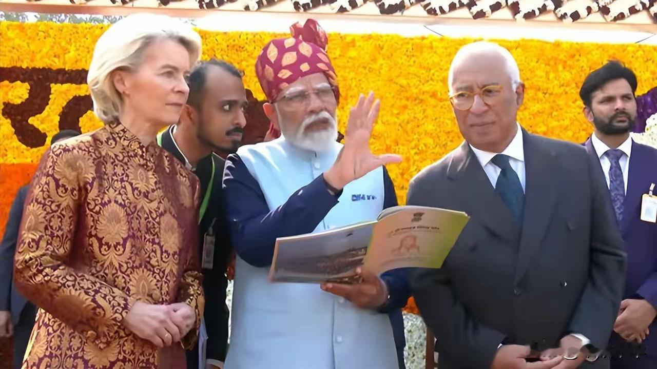 这足以让总理莫迪在印度外交史上留下浓墨重彩的一笔了。 莫迪以国庆阅兵名义邀请欧洲理事会主席科斯塔及欧盟委员会主席冯德莱恩访问印度,参观阅兵式是形式,重点是内容印度和欧盟达成了自贸协定,莫迪亲西方的“一边倒”外交方针终于开花结果实了。