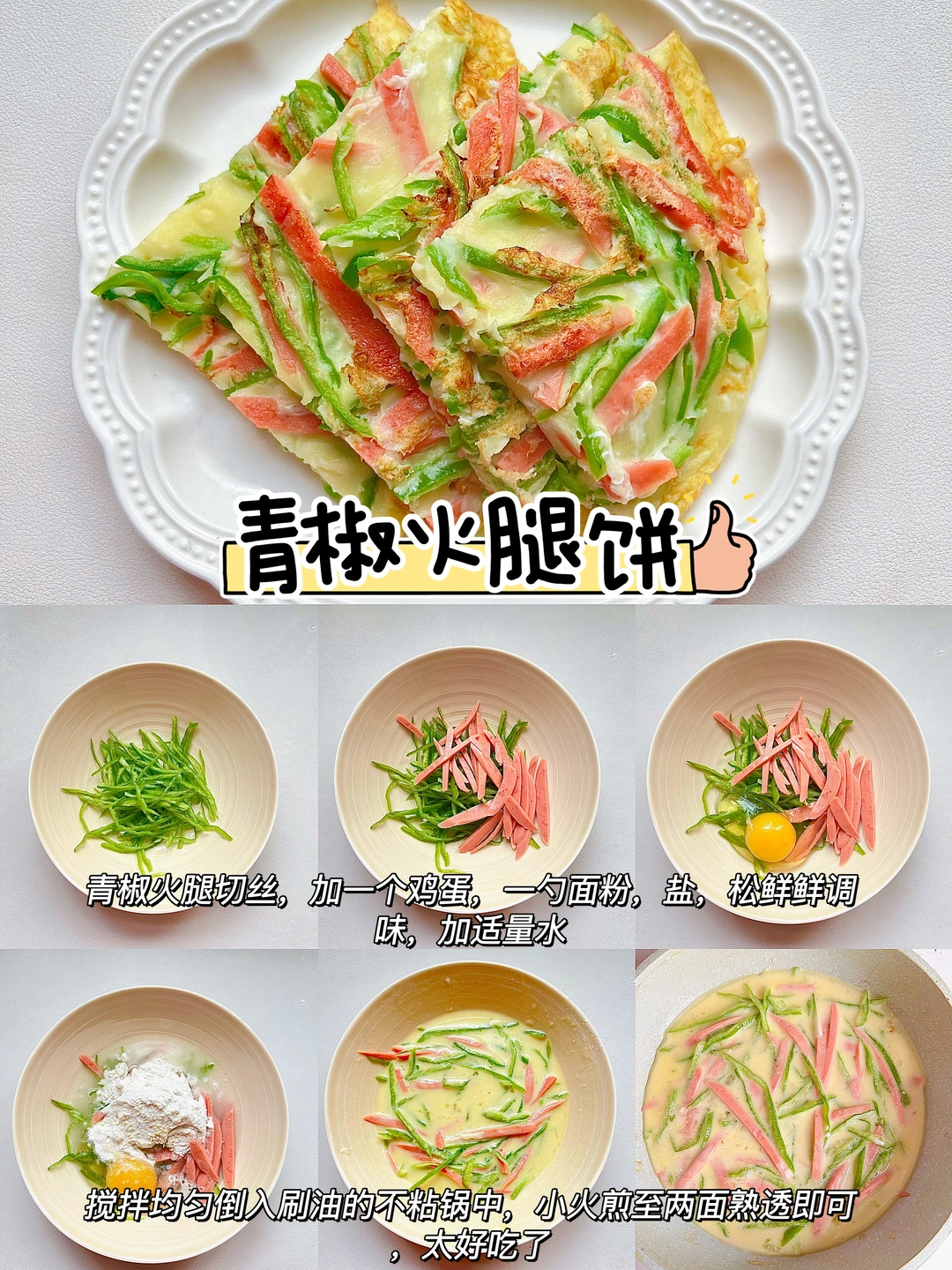 哇,香喷喷的早餐鸡蛋饼分享来了🥰 简单好做,营养好吃,5分钟就可以轻松搞定的快手早餐,大人孩子都可喜欢了~ 蘸酱吃,味道真的绝绝子~ 🥣香葱虾皮饼 🥣玉米芝士饼 🥣白菜鸡蛋饼 🥣韭菜鸡蛋饼 🥣香菜鸡蛋饼 🥣青椒鸡蛋饼 ✅具体做法参考图文教程哦~食材大小根据自家实际情况调整即可~