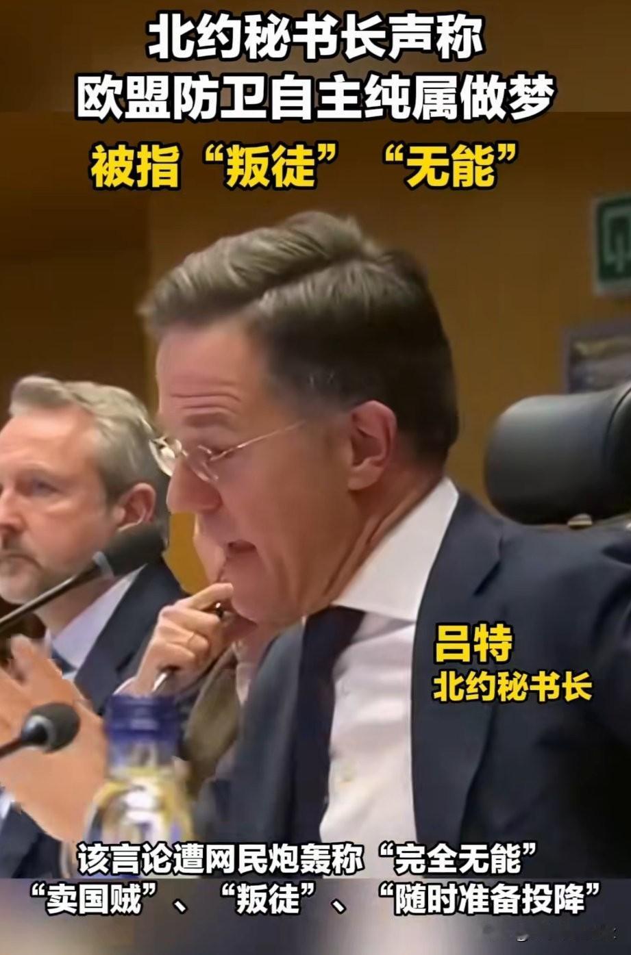 [捂脸]北约秘书长“吕特”直言:“没有美国的欧洲防卫自主,就是做梦”…… [大金牙]此言论一出遭大量欧洲网民铺天盖地的炮轰是叛徒、无能、说白了这就是随时准备投降🏳的自白和宣言。。。 这种软骨头表态,不仅把欧盟的脸皮撕下来、扔在地上摩擦,还是狠狠狠的抽了“泽连斯基”一个大耳刮子。。。 [捂脸]受伤最大的可不是老欧洲,而是被揍了“四年”也不悔,死活都要加入北约的乌克兰🇺🇦! 我十分喜欢欧洲这种自揭伤疤、晒底裤的德性,毕竟盖不住还不如敞开了,如此也算是怂的坦然、有气度!