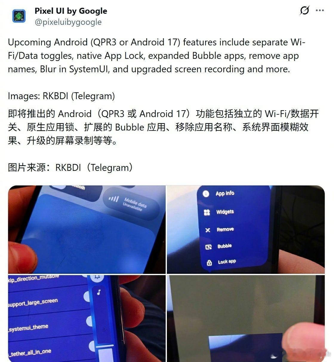 安卓17内部版首曝✨RKBDI X平台释出截图,系统级毛玻璃特效拉满质感,轻量化录屏工具超实用,UI视觉+交互双升级~安卓17Android 17手机系统谷歌民间艺术观察数码闲聊站Android
