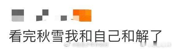 看完秋雪我和自己和解了 《秋雪》是一部关于“放下”的教科书。不是放下某个人或某段情,而是放下那个必须完美、必须强大、必须被所有人喜欢的、虚幻的自我想象。当“假我”的雪层消融,“真我”才能呼吸。与自己和解,是人生能收到的最好礼物。