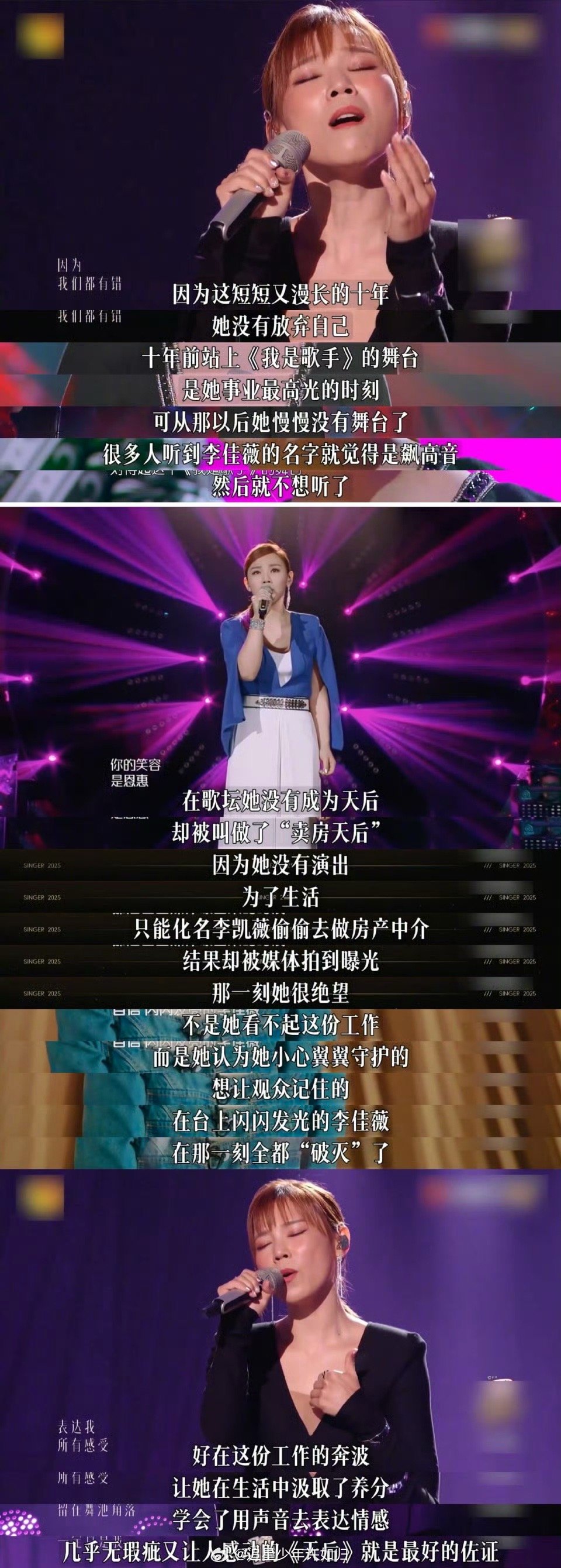 李佳薇逆袭文女主夯爆了 这就是大女主剧本照进现实!从唱《煎熬》的“铁肺女王”,到沉寂期被调侃“卖房天后”,李佳薇用一场《歌手2025》的绝地反击,把所有的低估都踩在了脚下。她用实力告诉所有人,真正的歌手,话筒一拿,天下就是她的。