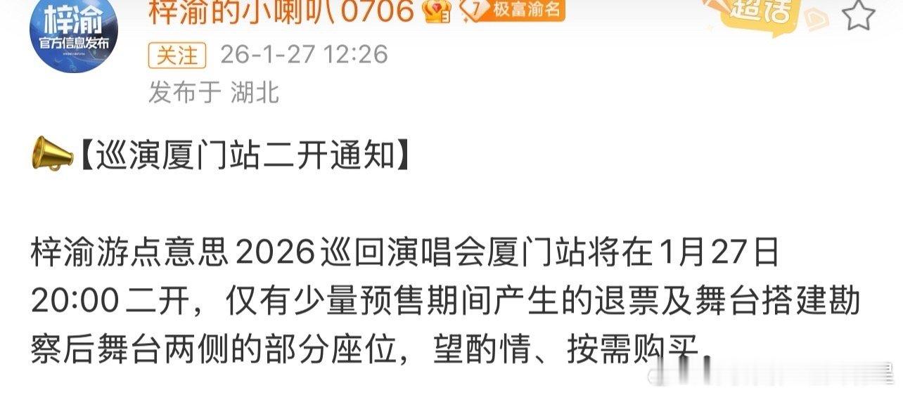 梓渝巡演厦门站二开 梓渝巡演厦门站二开喜讯速递,没抢到的机会来了,准备好手速和