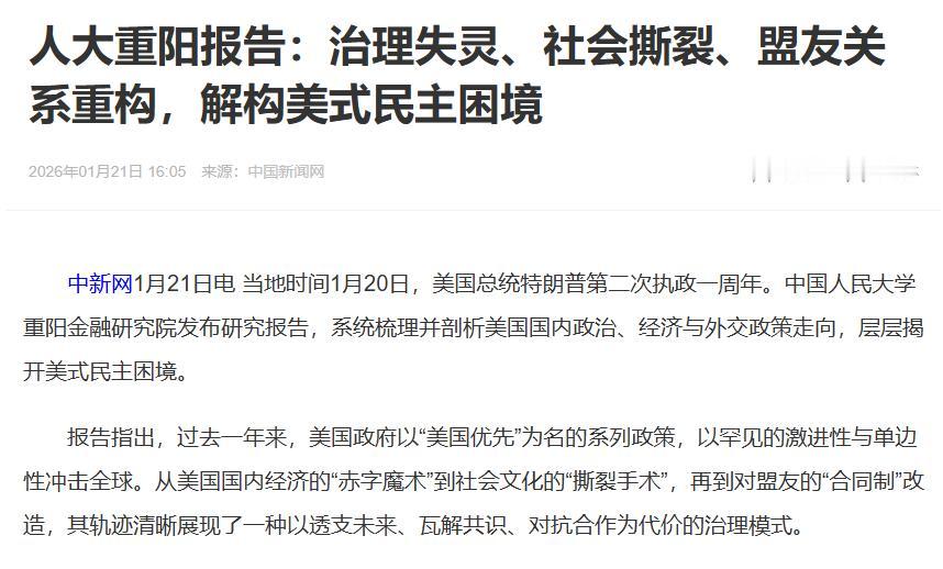 2026年刚开年,美国的日子就过得不太平。国内抗议火烧连城,天灾席卷过半国土,昔日盟友公开翻脸。政治极化、社会撕裂、联邦与州政府公开“打架”,这些剧本轮番上演。 明尼苏达州的枪声,成了点燃新一轮社会动荡的火星。一名公民在联邦特工的执法行动中死亡,事件迅速勾起人们对以往类似悲剧的记忆。联邦政府的反应耐人寻味,白宫方面态度显得冷淡,甚至有指责地方官员处置不力的声音传出,这种“甩锅”姿态被《纽约时报》捕捉并报道。 民众的愤怒不会被公文轻易熄灭,抗议活动从明尼苏达蔓延开来,西雅图等地的街头再次人头攒动。民众的失望情绪有数据支撑,对联邦政府的信任度已跌至35%的冰点。 州政府一纸诉状将联邦部门告上法院,并成功申请了临时限制令。这道法律屏障一旦生效,很可能捆住移民与海关执法局(ICE)等联邦机构在当地的手脚,执法模式的冲突从街头对抗升级为司法博弈。 政治对手们自然不会放过这个舞台。前总统奥巴马、克林顿等人相继发声,批评的矛头直指现任政府的冷漠与失能。民主党精心塑造着“特朗普政府漠视平民生命”的叙事,希望为接下来的选举积攒弹药。 共和党方面则陷入两难,坚持强硬执法立场是他们的传统政治筹码,但在汹涌的民意和不断发酵的舆论危机面前,这张牌的风险正在急剧增大。回想特朗普第一任期中期,其支持率尚能维持在50%左右,如今35%的数字对比鲜明,无疑给共和党在中期选举的前景蒙上了一层厚重的阴影。 天灾也不甘寂寞,跑来给这场混乱“加码”。一场罕见的极端天气袭击全美,足足23个州宣布进入紧急状态,断水断电的报道不绝于耳。 政府的救援行动被许多民众批评为迟缓且低效,这场自然灾害像一面放大镜,清晰地照出了美国基础设施的老化与应急体系的薄弱环节。进一步加深了民众心中“政府靠不住”的印象。自然灾害应对不力,从另一个维度损耗着政府的公信力。 特朗普近期关于“美国从不需要北约”的言论,虽是其一贯风格的延续,却在欧洲激起了巨大波澜。英国首相斯塔默的公开斥责显得尤为刺耳,这让习惯了英美特殊关系的观察家们颇感意外。 尽管特朗普后续试图通过电话和社交媒体进行解释修补,但裂痕已然产生。意大利、法国等欧洲主要盟友后续的表态也显得谨慎而疏离,盟友间的信任基础出现了肉眼可见的松动。 美国联邦制在设计上就留有中央与地方分权的张力,每逢重大危机,这种张力便会凸显。但当前的特殊性在于,这种权力拉锯被极化的政治斗争所绑架,演变成治理体系的“碎片化”,谁也指挥不动谁,效率自然无从谈起。 再者是社会撕裂的恶性循环。每一次抗议活动,几乎都在瞬间被不同政治阵营“认领”,成为攻击对方的工具,解决问题的初衷让位于政治斗争的需要。社会共识越来越难寻觅,民众在相互对立的叙事中变得更加分裂,正如新华社国际观察所指出的,美国社会的裂痕正在持续加深。 这么多麻烦缠身,一个自然的问题浮现:特朗普总统会提前下台吗?从法律和现实政治角度看,难度极大。 美国总统的罢免途径,无论是弹劾还是启动宪法第25修正案,都需要国会内跨党派的高度共识,这在当前的政治环境下几乎是不可能完成的任务。明尼苏达的诉讼和限制令,更多是损耗其行政权威与效率,而非直接通向罢免。 真正的考验在于选举政治。几个月后的中期选举,可能改变国会的权力格局。共和党内部是否会出现为求自保而与特朗普“保持距离”的迹象,将是重要观察点。 它的走向,将取决于几个关键节点:中期选举的结果、最高法院在府院之争中的态度、以及经济指标是否还能提供支撑。这个超级大国正处在一个充满张力的十字路口,各方都在等待下一个转折时刻的到来。