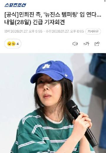 闵熙珍明日开记者会 据韩媒,闵熙珍将于明日召开记者会,她将在会上传达关于ADOR的损害赔偿诉讼、ADOR对New Jeans部分成员的合同解除和损害赔偿诉讼,以及教唆NewJeans离开ADOR嫌疑的真相。