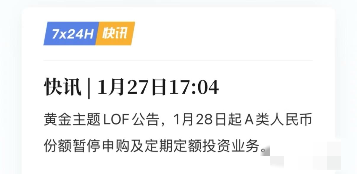 就折腾吧 黄金lofA 停止申购! 随着白银lof的停止 紧接着黄金lof也停止了! 且行且珍惜!