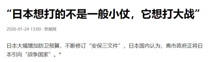 奉劝所有中国人,必须要做好心理准备,因为央视网已经说出了事实:“日本想打的不是一般小仗它想打大战”日本大幅增加防卫预算,不断修订“安保三文件”,日本国内认为,高市政府正将日本引向“战争国家”。 奉劝所有中国人,必须要做好心理准备,因为央视网已经说出了事实:“日本想打的不是一般小仗,它想打大战。”这不是危言耸听,而是来自官方的警示。这一切的背后,隐藏着怎样的隐忧?我们是否已经意识到,曾经的“战后和平”是否只是表面繁华?日本大幅增加防卫预算,不断修订“安保三文件”,这一系列动作,无疑是在向世界发出信号:他们的野心并未消退,反而在悄然升温。 更令人担忧的是,日本国内的声音也在逐渐变得激烈。高市政府的言论引发了广泛关注,甚至有人开始将日本描绘成“走向战争国家”的潜在威胁。这不仅仅是政策的调整,更像是一场关于未来走向的“宣战”。难道我们要眼睁睁看着昔日的战火阴影再次笼罩亚洲?这不仅关乎国家的安全,更关乎我们每一个人的未来。 然而,令人感慨的是,很多中国人似乎还在麻木中。有人觉得“远在天边”,有人相信“不会有事”,但真的是这样吗?历史告诉我们,和平从来都不是天上掉下来的礼物,而是需要我们用智慧和勇气去守护的成果。面对日本日益增强的军事姿态,我们是否准备好迎接可能的挑战?我们是否能在复杂的国际局势中,保持冷静和理智? 更深层次的问题是:这场“潜在的大战”,究竟是谁在推动?是某些政客的短视,还是某些利益集团的算盘?我们每个人都应该反思,国家的安全不仅仅是军备的堆砌,更是全民的觉醒和团结。只有当我们真正认识到威胁的严重性,才能在关键时刻挺身而出,守护我们共同的家园。 所以,朋友们,不能再犹豫了。我们需要的不是恐慌,而是理性的警觉;不是逃避,而是积极的准备。面对未来的风云变幻,让我们用坚定的信念和实际行动,告诉世界:我们中国人,绝不会让任何威胁得逞!因为,只有心中有信念,才能在风雨中屹立不倒。中方对日本态度 日本战争风险