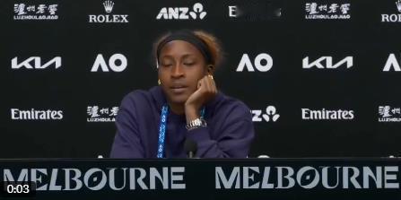 高芙在澳网公开赛上输给斯维托利娜后表示: “这得她造成的。是她逼我那样打的。并不是说我醒来后……嗯,今天就是糟糕的一天……但糟糕的日子往往是由你的对手造成的。” 当被问及在输给斯维托利娜后摔球拍是否有助于她放下过去继续前进时, “你是不是觉得,把球拍摔了,让失利就此结束,这样很健康?这样做能帮你继续前进吗?” 高芙回答道: “是的,确实如此。我想,对我来说,我了解自己。我不想迁怒于我的团队。他们都是好人。他们不应该受到这样的待遇。我知道自己情绪化。我只是花了一分钟去做那件事。我不认为这是件坏事。我不会在球场上,在孩子们和类似场合面前发火。但我的确知道我需要释放那种情绪……否则,我会对周围的人发火。我不想那样做。就像我说的,他们不应该受到这样的待遇。他们已经尽力了。我也尽力了。只是需要释放一下那种沮丧。” 她今天完全发挥不出来。 26个UE比对手多10个,3个制胜分比对手少9个,没有ace有5个双误,对方没有双误有4个ace。 全面落后,输球也就不奇怪了。