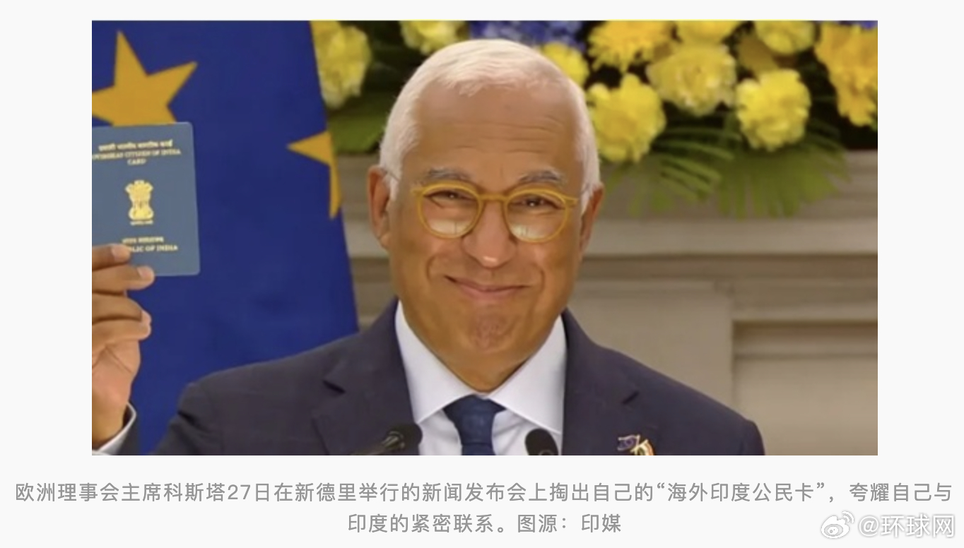 #印欧谈判后欧理会主席晒印度公民卡#【印欧达成自贸协定,欧洲理事会主席当场“摊牌”:我是海外印度公民】#欧理会主席晒海外印度公民卡# 印度总理莫迪27日说,印度与欧盟达成自由贸易协定。综合《今日印度》、新德里电视台等多家印媒报道,印欧达成自贸协定之际,欧洲理事会主席科斯塔27日在新德里举行的新闻发布会上掏出自己的“海外印度公民卡”(OCI),夸耀自己与印度的紧密联系。“我是欧洲理事会主席,但我也是一位海外印度公民。”情绪颇为激动的科斯塔边说边从口袋中拿出“OCI”卡,“因此,可想而知,这对我有特殊意义,我为我的果阿(指印度西部一个邦)血统感到自豪。因为我父亲的家族来自那里,欧洲与印度之间的联系于我而言具有个人意义。”科斯塔还说:“今天我们结束了贸易谈判……此次峰会向世界发出了一个明确信息:在全球秩序发生根本性重塑之际,欧盟和印度作为可靠的战略伙伴站在一起。今天,我们将伙伴关系提升至新高度。”印媒称,对于科斯塔提到自己的果阿血统,在场者知之甚少。科斯塔有葡萄牙国籍,曾担任葡萄牙总理,其家族根源可以追溯到印度果阿,其祖父在此出生并度过大部分时光。2017年,印度总理莫迪向时任葡萄牙总理的科斯塔颁发OCI卡。据印度媒体报道,在27日举行的第16届印度-欧盟峰会上,莫迪宣布印度与欧盟达成自由贸易协定。他说,双方已于26日签署了印度-欧盟自由贸易协定。这项自贸协定旨在改善市场准入,减少贸易壁垒,并为双方企业提供更稳定的长期规划和规则。在协定框架下,双方将在贸易、安全和清洁能源转型等领域开展合作。美联社报道,印欧自贸协定的达成正值美国对印度、欧盟等经济体征收高关税之际。