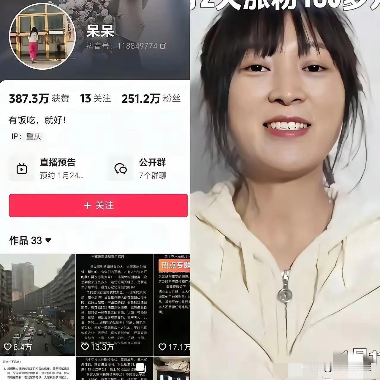 网红的尽头,果然是带货! 呆呆这次变脸的速度,比翻书还快,1月24号首秀,简直把前几天“绝不带货”的誓言按在地上磨擦。 之前是真的“按猪”,现在看来,是把观众当成了待宰的猪。 当初信誓旦旦的初心,在巨大的流量面前,连三天都没撑住。 这不是打脸,这是赤裸裸的精算。 有些人设,建立起来就是为了推倒的。 先用“清流”吸粉,再用“洪流”变现,剧本早就写好了,只有观众还傻傻的活在戏里。