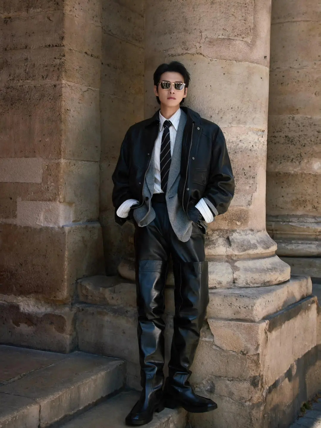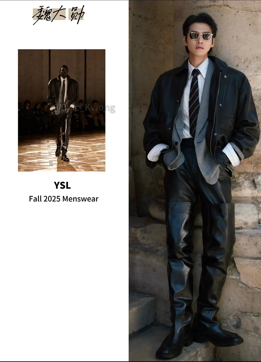 真的好适合皮衣,这个魏大勋就这样闪耀巴黎 我们微醺是ysl国内唯一四次邀请三次看秀,也是近年唯一被ysl推封的男明星