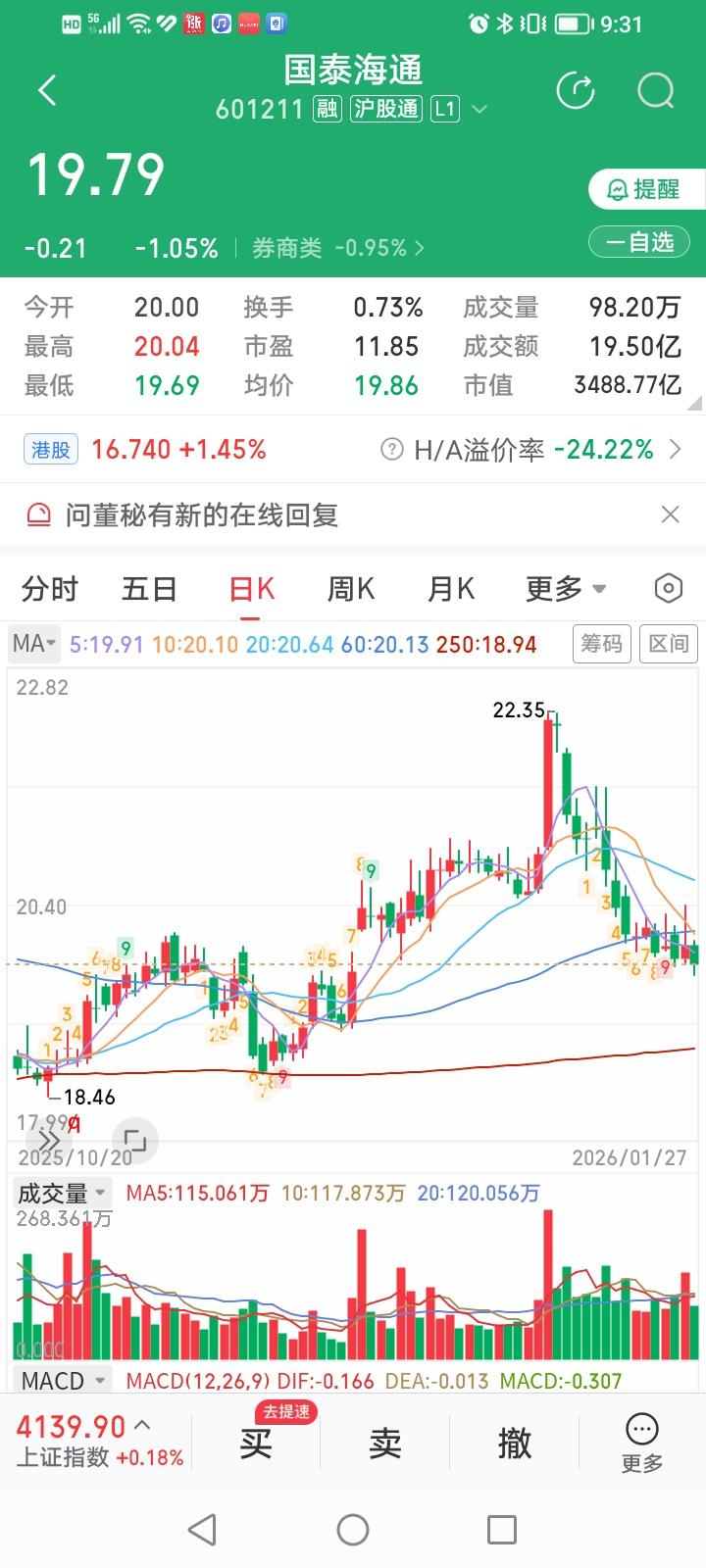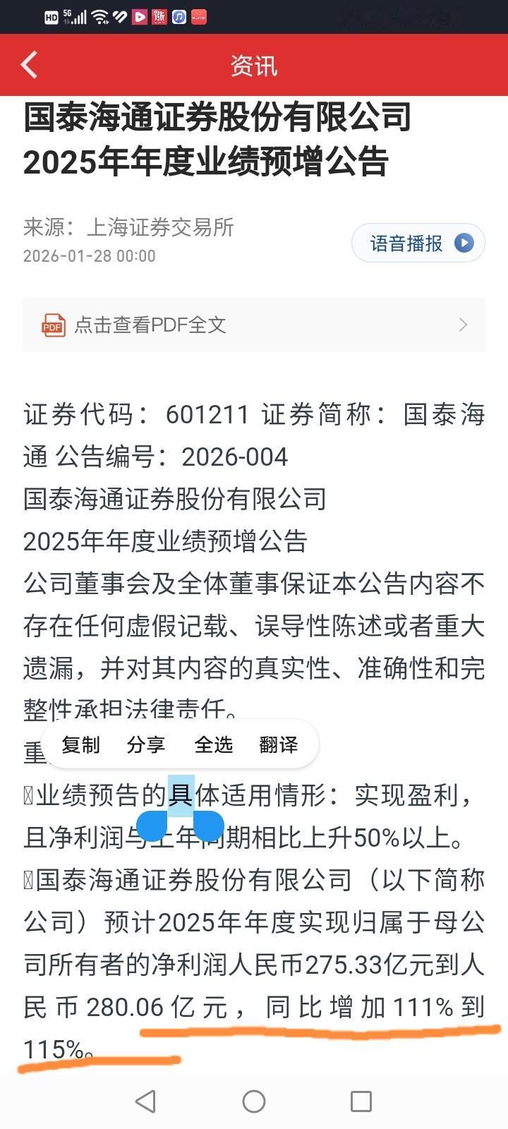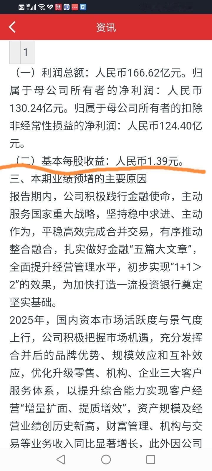 是巧合还是市场估值水平太高?按照中信证券和国泰海通最新披露的2025年底业绩快报计算,市场给券商市值一哥和市值二哥的估值竟然完全相同,都是14.2倍市盈率。只不过中信证券是14.21倍市盈率,国泰海通是14.23倍市盈率。其间只差了0.02倍。太神奇了。 中信证券归属净利润同比增长38.46%,每股收益1.96元。 国泰海通归属净利润同比增长111%——115%,每股收益1.39元。 从增长率看,国泰海通是大幅领先,但从绝对收益看,中信证券又比国泰海通高了不少。 原来只认为券商的同质化竞争很激烈,没想到市场冥冥中给这哥俩的估值也如此相同。