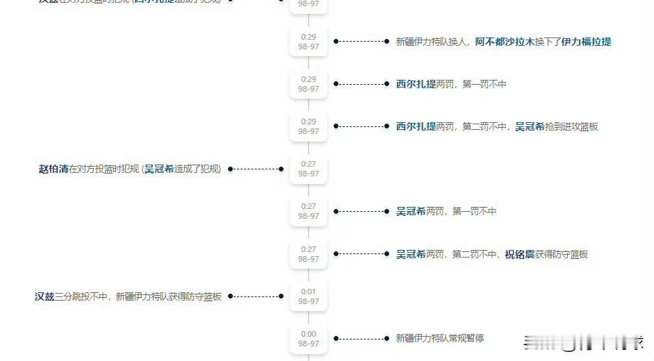关键四罚不中,到手的胜利飞了! 今晚新疆男篮VS同曦男篮的比赛,比赛最后29秒,新疆男篮以97-98落后1分,西尔扎提获得了罚球机会,只要罚中1球就能扳平,2罚全中就能反超准绝杀,但他2次罚球全部投丢。然而幸运女神还是站在了新疆男篮这边,吴冠希抢下进攻篮板并制造了赵柏清的投篮犯规,他也获得了2次罚球时机会,同样可以为球队扳平或者反超比分,但他同样2罚全丢。连续丢了4个罚球让新疆男篮彻底没了心气,最终还是以1分告负。关键时刻连续4罚不中,错失了如此良机,真是活该输球啊!