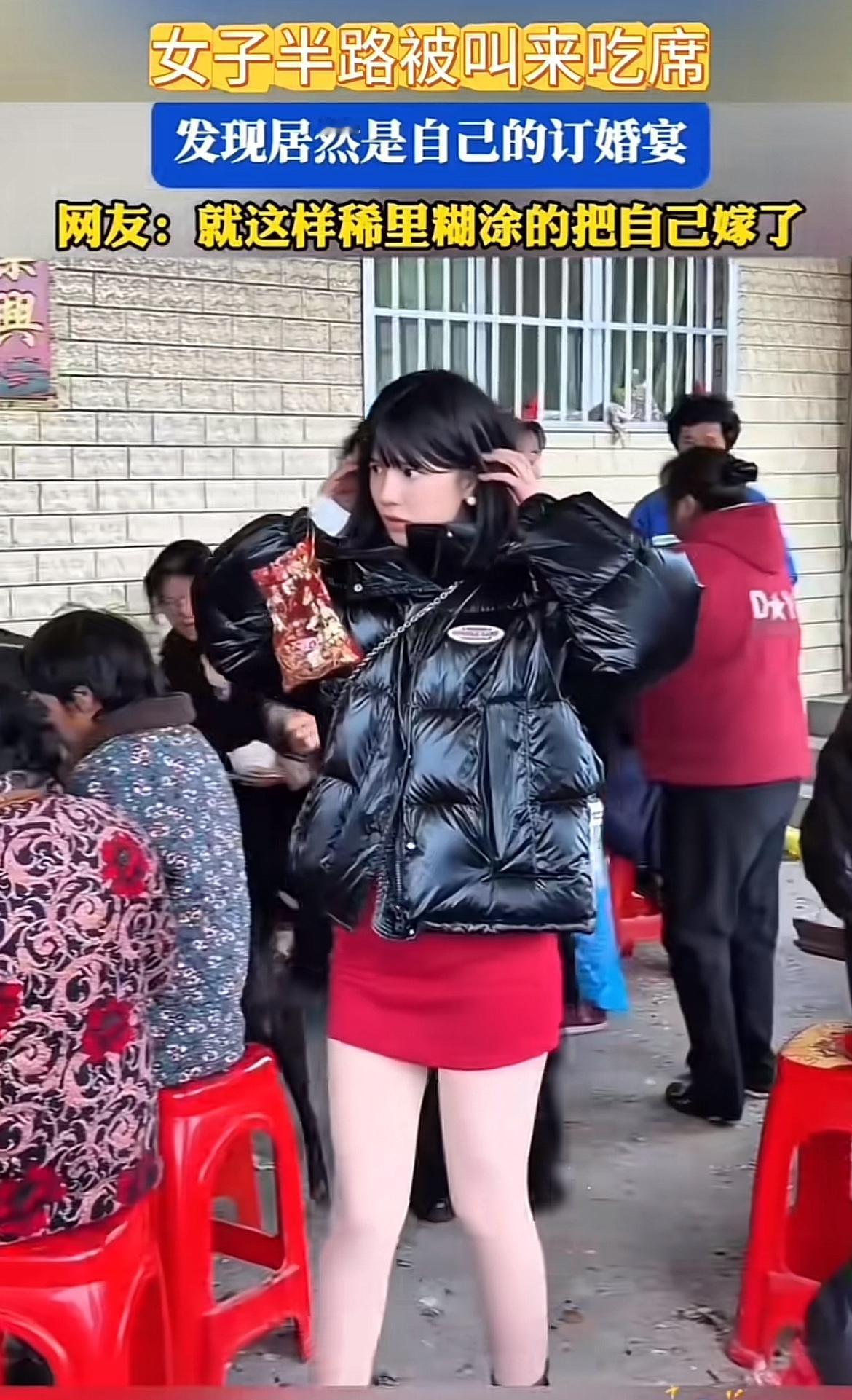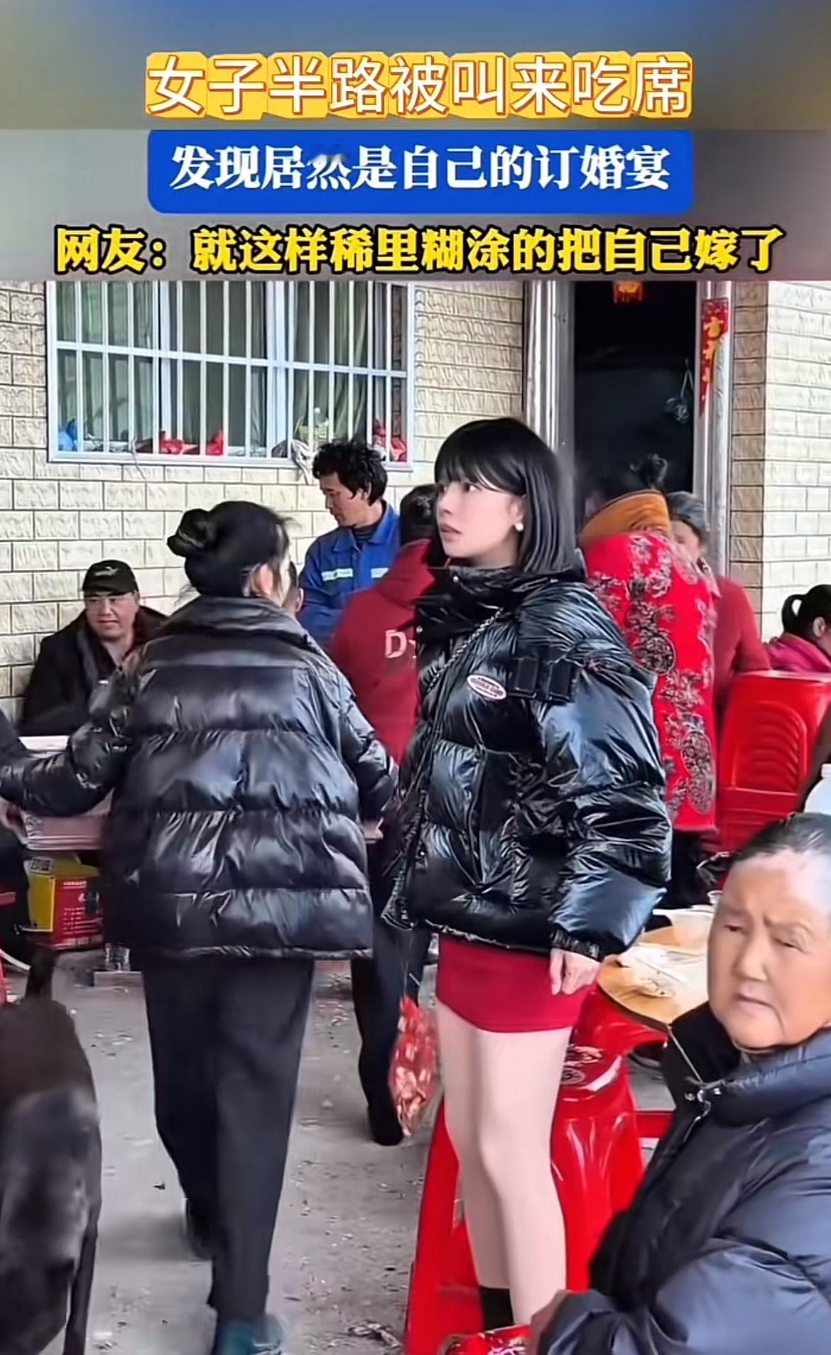 想象一下,正过着平平无奇的一天,突然被朋友拉去吃席。到了现场,那场面张灯结彩,热闹非凡,还疑惑是哪家这么大阵仗。可越看越不对劲,墙上的照片居然是自己和一个不太熟的人,定睛一看,居然是自己的订婚宴! 这剧情反转得比坐过山车还刺激。就像做梦一样,自己都还没准备好,亲朋好友却都到齐了。估计当时内心OS是:这是啥情况?谁给我安排的?不过换个角度想,也挺有惊喜感,说不定从此开启一段浪漫的婚姻之旅呢。