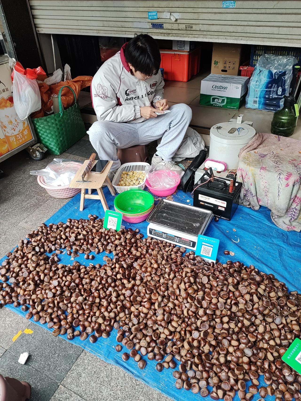 211高校毕业生摆地摊卖板栗。 今天碰到一个摆地摊卖板栗的小伙子,一问,才知道他竟然是广西大学语言专业毕业。刚毕业的时候,一开始是去深圳打工。 在深圳,他前后进过两家外贸公司工作,月薪约8千。一个月下来,扣除房租和日常生活开支,结果4年下来,他是一分钱也没有存到,几乎每个月都是月光族。 他家里是农村的,他父亲这些年都是在南宁摆地摊。看到他这样在深圳打工下去不是办法,于是他父亲和他商量后,就让他回到南宁,父子俩一起到产地收直接收购板栗到南宁市来卖。每次都是收购3000斤左右。 吃板栗最麻烦的就是去壳,于是他们就想到了一个办法:买一个板栗去壳机,现场帮买板栗的顾客免费去皮。 卖一年板栗下来,他们父子就赚了约20多万的纯利润。这样一算,可比他在深圳打工时的收入强了很多。 可惜的是,4年的大学有点“白”读了。