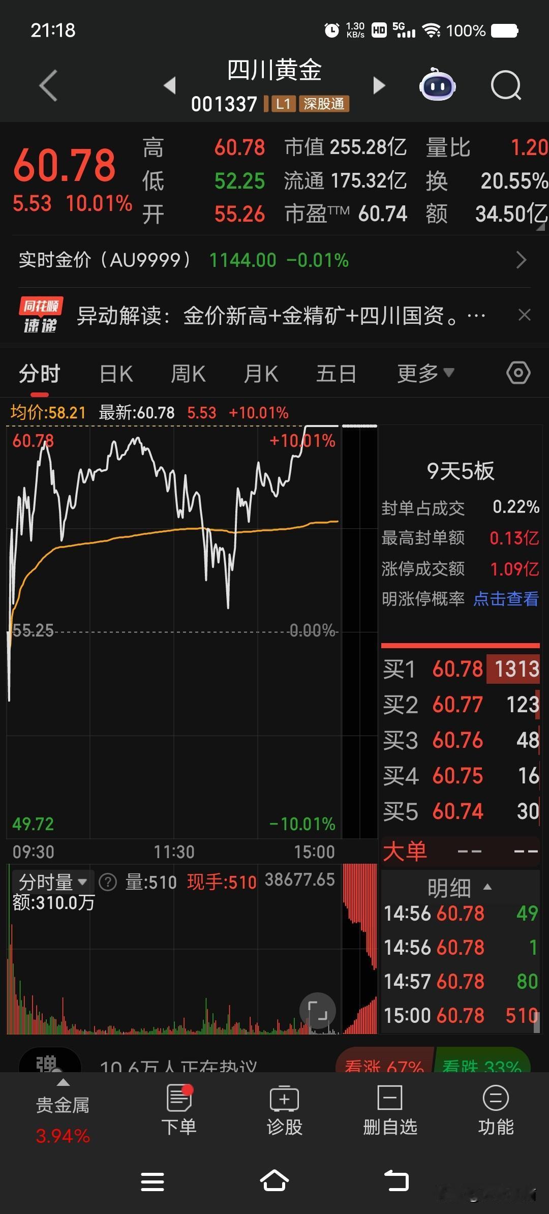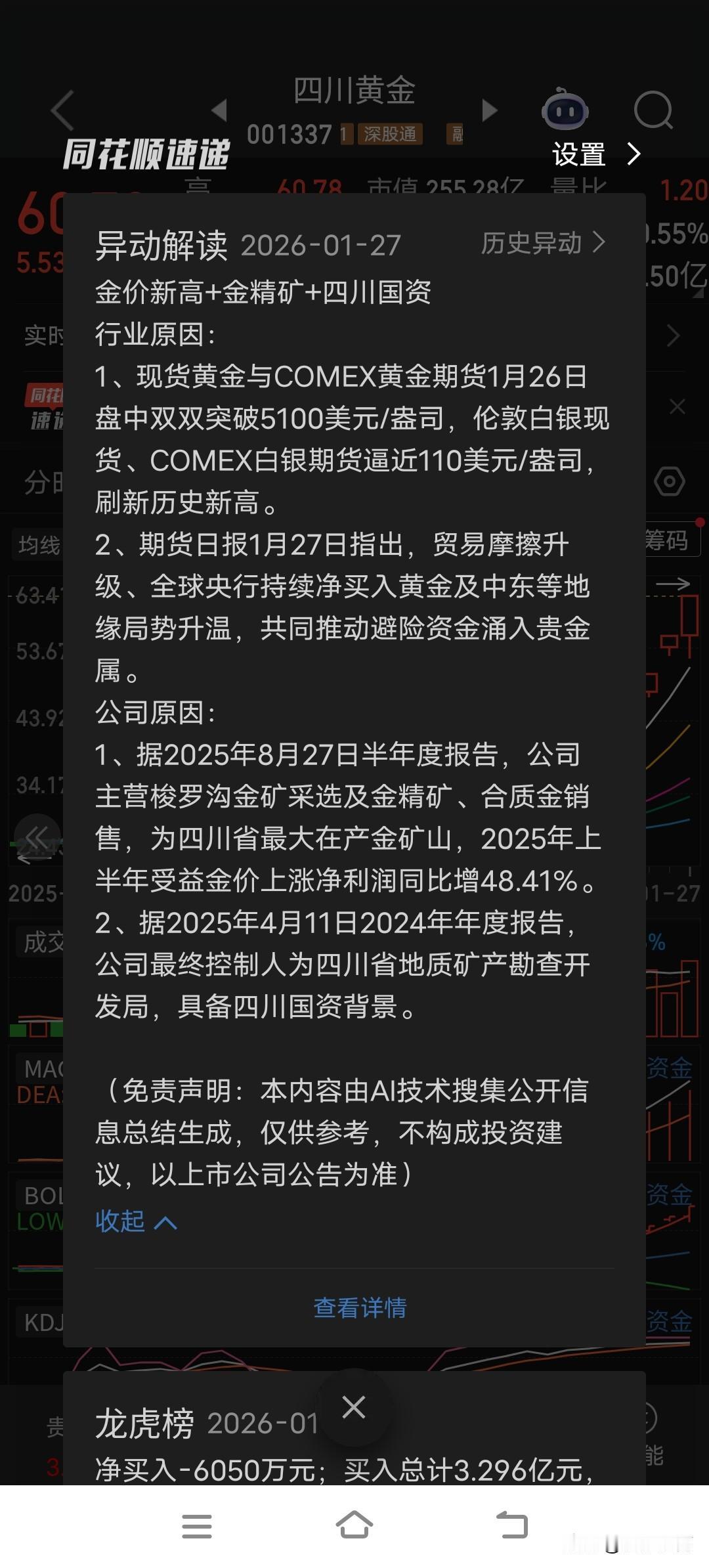 黄金、白银概念股新龙头 四川黄金(001337) 湖南白银(002716)