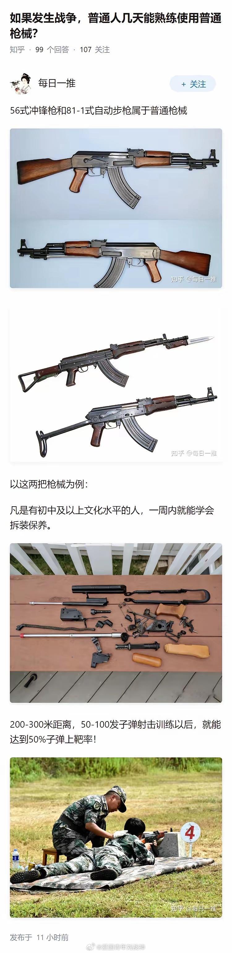 “如果发生战争,普通人几天能熟练使用普通枪械?”