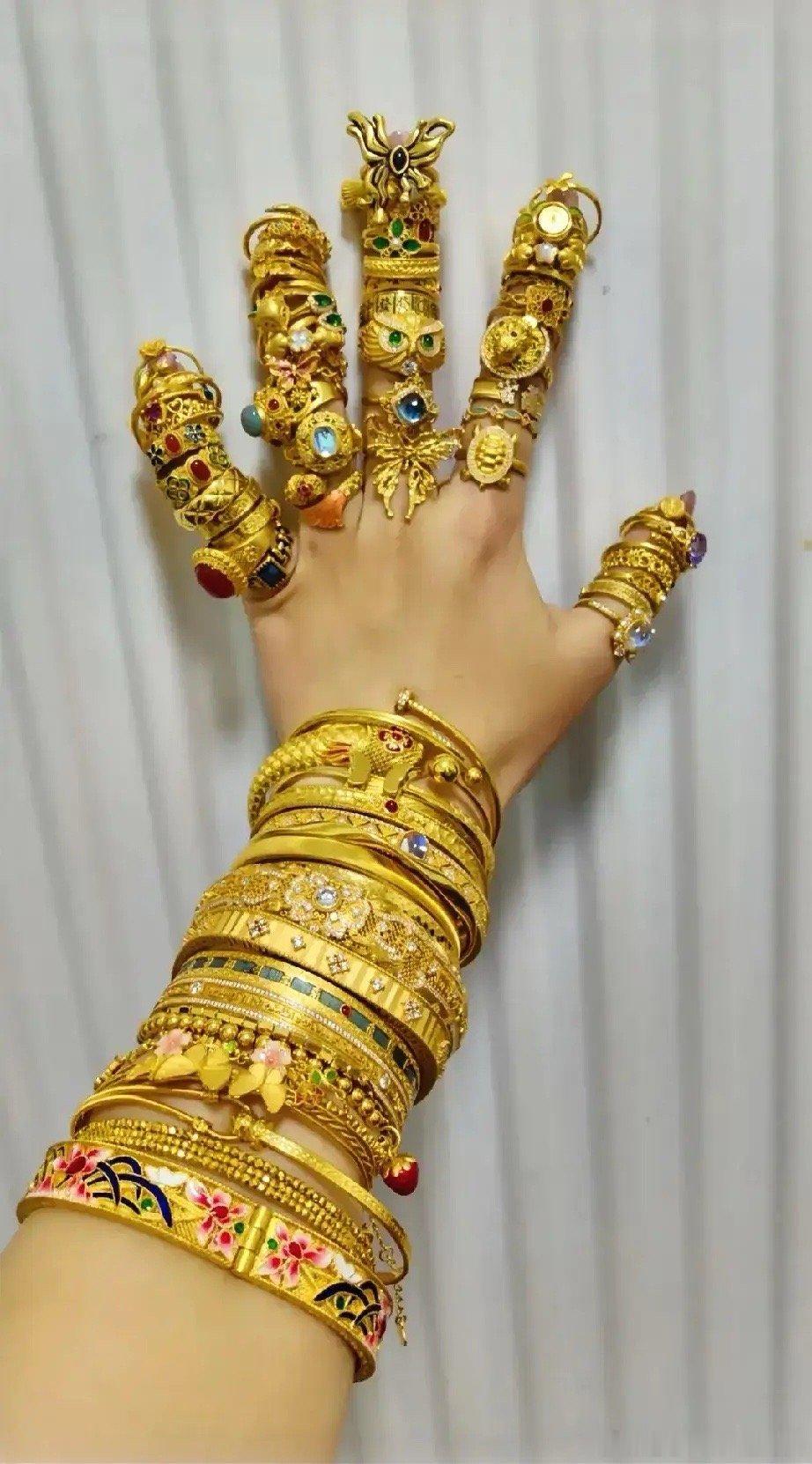 昨天跟我姥姥唠嗑,我说:“姥,现在金价可疯了,涨到一千多一克了!你的金镯子可值钱了” 我姥一听就来劲儿,赶紧问:“多少?真这么贵了?” 我说那可不,比买的时候翻了好几倍!想起好多年前大陆大妈疯涌香港抢购黄金,买空银楼还被人耻笑好久,现在看她们真是太有先见之明了!有人调侃那阵仗,简直是把金店镇店之宝全戴手上,走路上要是遇上盗贼,怕是都得被拦下留手。说到底,不缺钱的话黄金留着准没错,存金可比存钱靠谱,还能抵御通货膨胀呢。