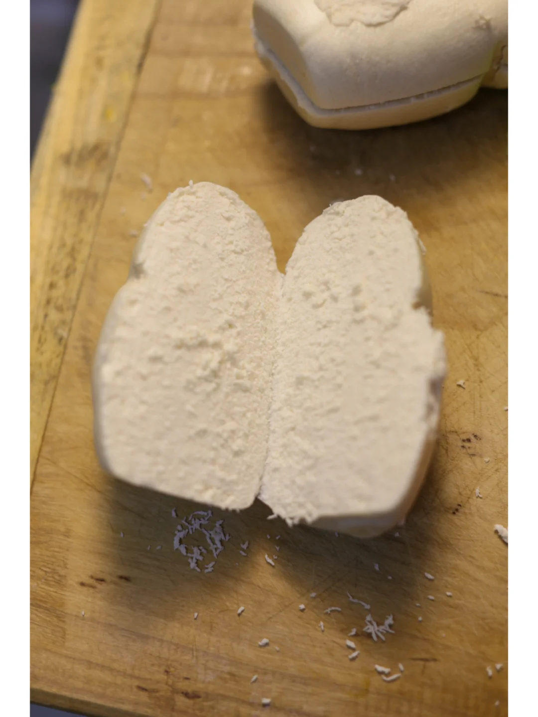 馒头的选择也是很多种,市售的有圆馒头、方馒头,这次我用的是去参加鲁北地区的婚礼拿回来的馒头。