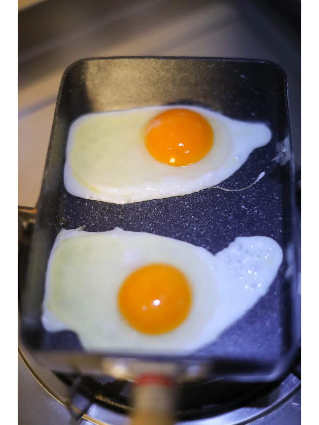 煎蛋可以根据自己的喜好做成流心蛋或者全熟蛋。