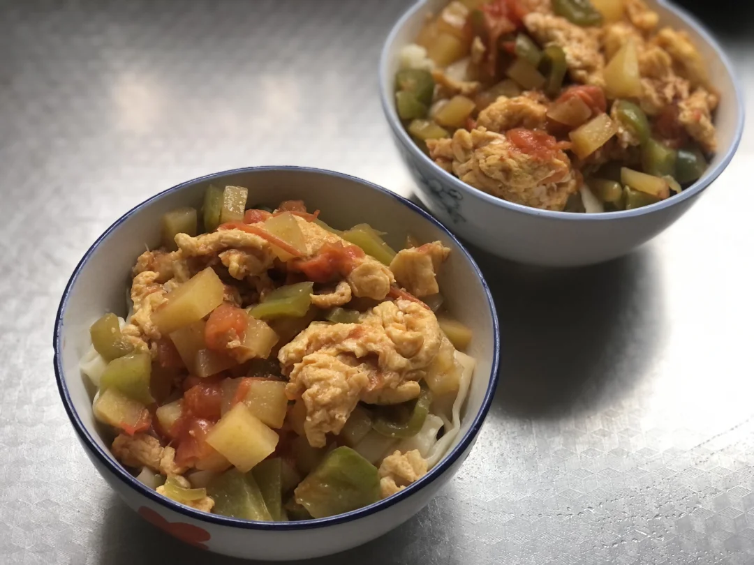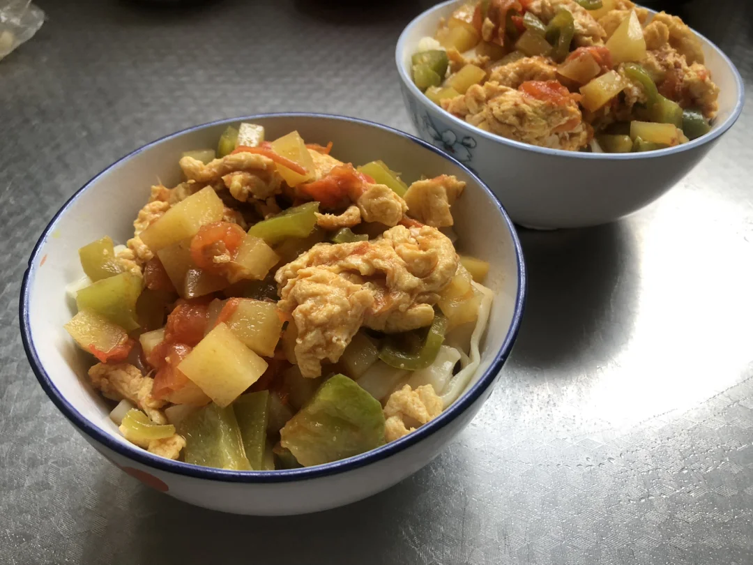 韭菜肉末鸡蛋碎炝锅面,味道绝了~