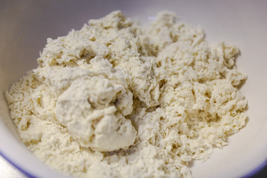 500克高筋面粉加入5克食盐,1克食用碱面,充分搅拌均匀之后,260克的清水少量多次加入面粉中,慢慢和成面团。