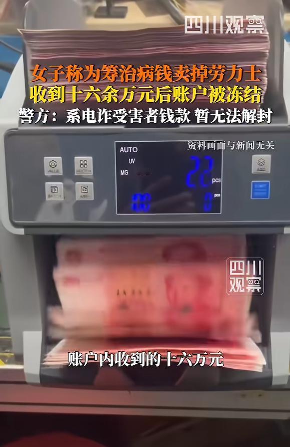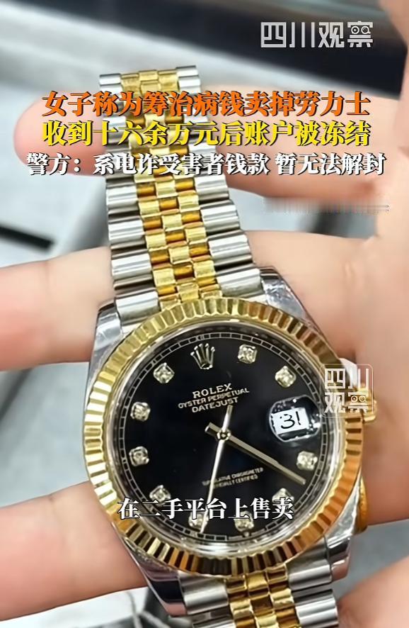 天塌了!陕西西安,女子得了癌症,为治病,把一块名牌手表卖了16.4万,收到钱第二天,银行账户被冻结,女子傻了眼,报警一查,说这16万是涉诈资金,女子拿出证据想解封,可没成功,警方协商女子和受害人双方均摊损失,女子不同意,警方回应:女子也有过错,因她还没排除洗钱的嫌疑,手表还在寻找中,解封可能还要等…… 这场让人揪心的闹剧,发生在2026年1月的西安,寒风裹着寒意,却吹不散当事人心头的绝望。 这位苏女士本就被癌症反复折磨,积蓄早已花光,还欠了不少外债,那块名牌手表是她手里仅有的能变现的资产,也是她活下去的希望。 为了稳妥,她找了熟人牵线,全程录了验表视频,保留了所有沟通记录,交易时还耐着性子配合买家派来的专业验表师逐一核对,能想到的风险她都尽量规避了。 只是她没料到,最大的坑不在手表真伪,而在资金流转的环节,买家以平台转账麻烦、有限额为由,提议私下转账钱货两清,急需用钱交化疗费的苏女士没多想就答应了。 她以为这样能快点拿到钱,却不知跳过正规交易平台的瞬间,自己就成了资金流转的一环,也给后续的麻烦埋下了隐患。 16.4万到账的那一刻,苏女士以为终于能喘口气,可短短一天后,当她拿着银行卡去医院缴费时,却被账户冻结的提示打懵了。 报警后才得知,这笔钱竟是电信诈骗的涉案赃款,买家用骗来的钱买了她的手表,变相完成了资金洗白。 苏女士赶紧整理了厚厚的病历、交易记录和视频证据找到派出所,想证明自己是善意出售,根本不知道资金有问题。 可警方也有难处,一边是苏女士完整的证据链,证明她主观无恶意;一边是明确的资金流向,这笔钱确实是赃款。 又因为没有正规平台监管,苏女士客观上协助了资金转移,洗钱的嫌疑暂时无法完全排除。 为了化解僵局,警方提出了一个调解方案,让苏女士和电诈受害人各承担一半损失。 可这个看似“公平”的提议,对苏女士来说却无比残酷,这不是普通的财产损失,而是关乎她生死的治疗费用,分出一半,就等于少了一半活下去的机会,她自然坚决不同意。 如今事情陷入了僵局,作为关键物证的手表下落不明,大概率已经被转手卖到了海外或黑市。 手表找不回来,资金流向的闭环就无法查清,苏女士的嫌疑也难以彻底洗刷,账户解封更是遥遥无期。 医院的催款单不会停,癌细胞的扩散不会等,一边是严谨却冰冷的司法程序,一边是与死神赛跑的脆弱生命,没有人犯了大错,却都被困在了这场由贪婪引发的困境里。 大家对此怎么看?欢迎评论区留下您的观点!
